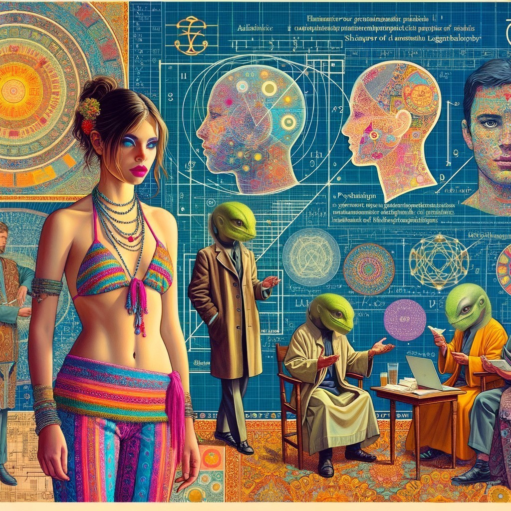 Alien & 1920s Freud walk Android Lizard on a Leash