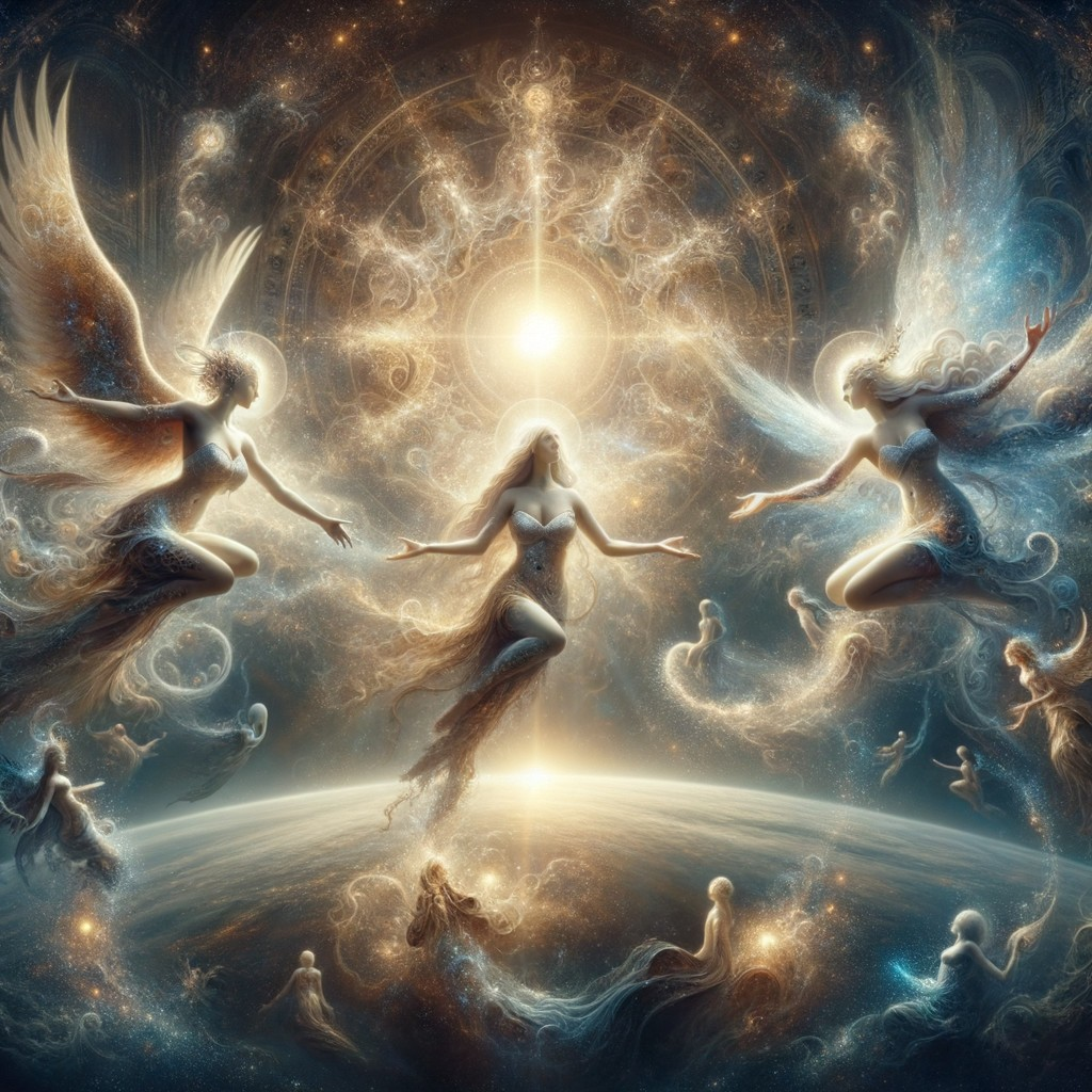 Celestial Elegance: Ethereal Beings in Cosmic Splendor