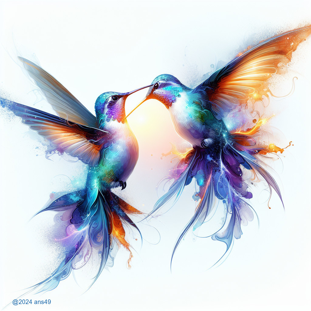 Hummingbirds in a Dance of Colorful Harmony