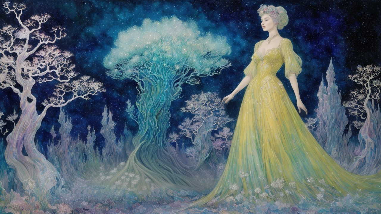 Ethereal Trees in a Dreamlike Sunset Landscape