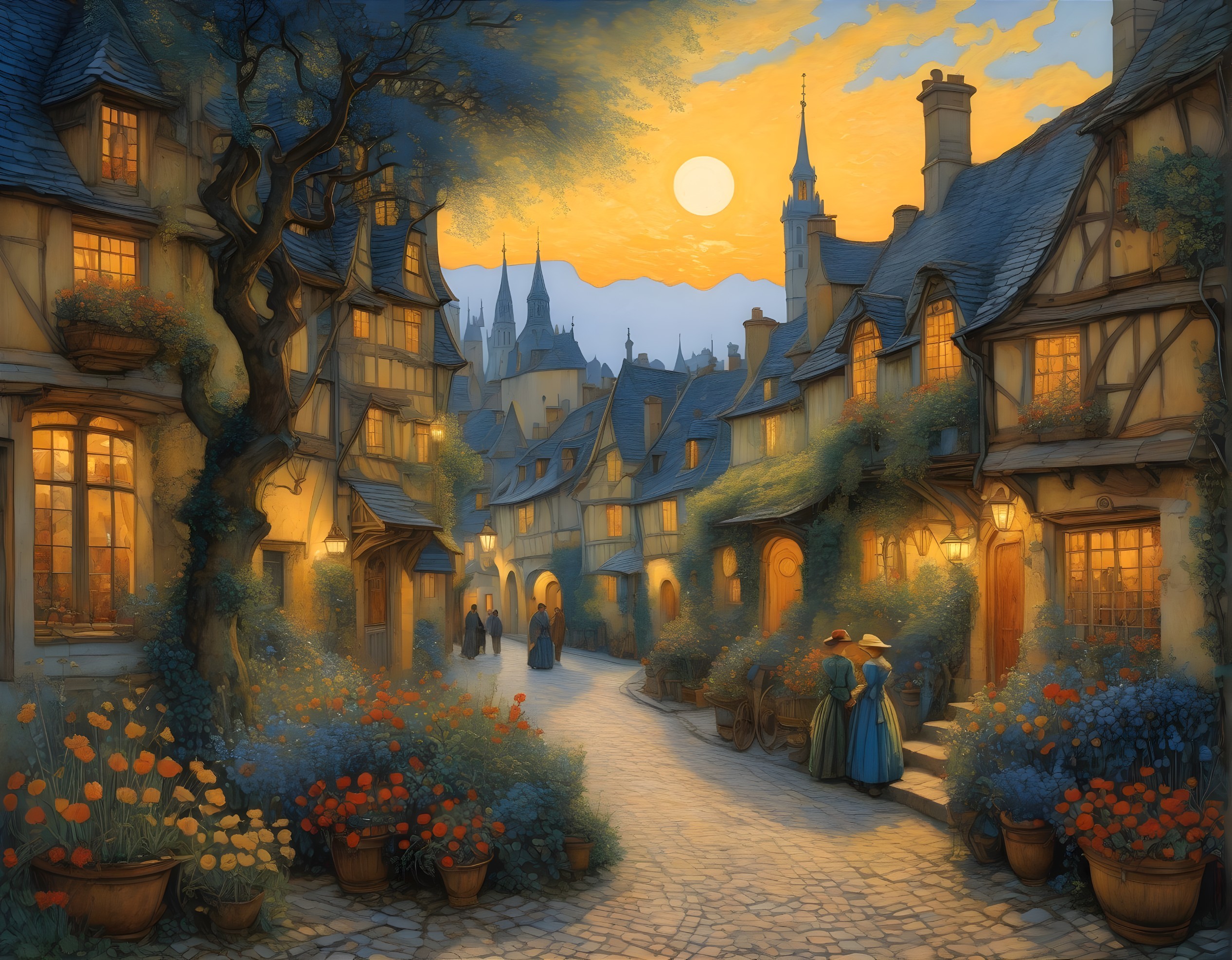Twilight Tranquility in Village