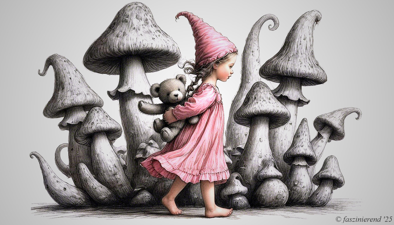 Whimsical Woman in a Mushroom Wonderland