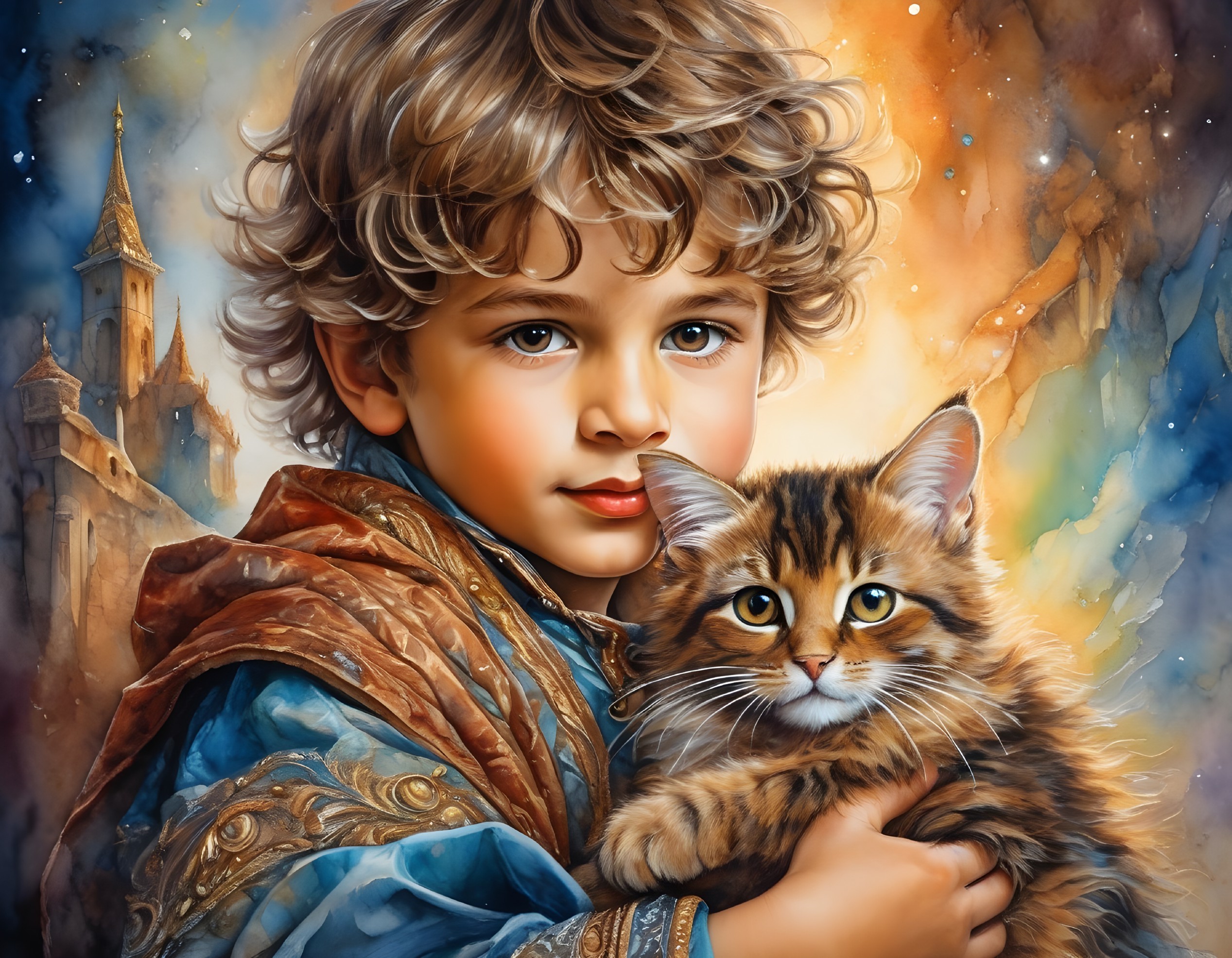 Enchanted Feline in Cosmic Castle