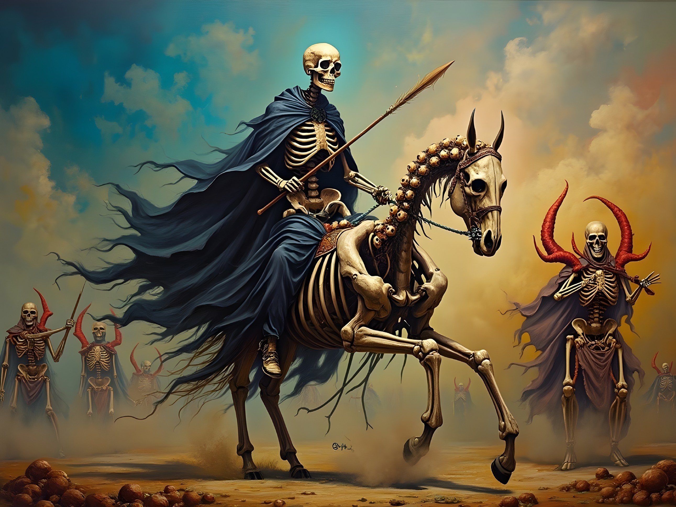 Skeletal Riders in an Eerie Landscape