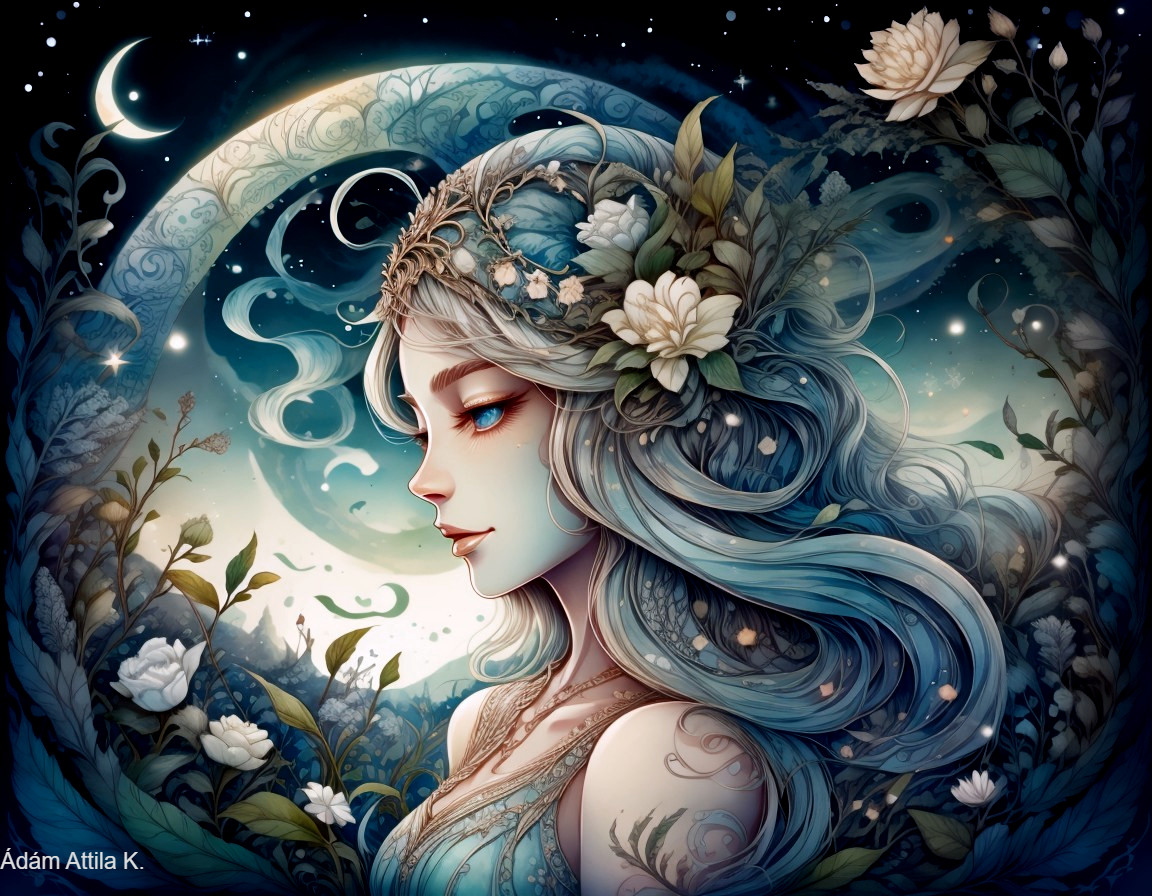 Mystical and beautiful woman in a dreamy landscape