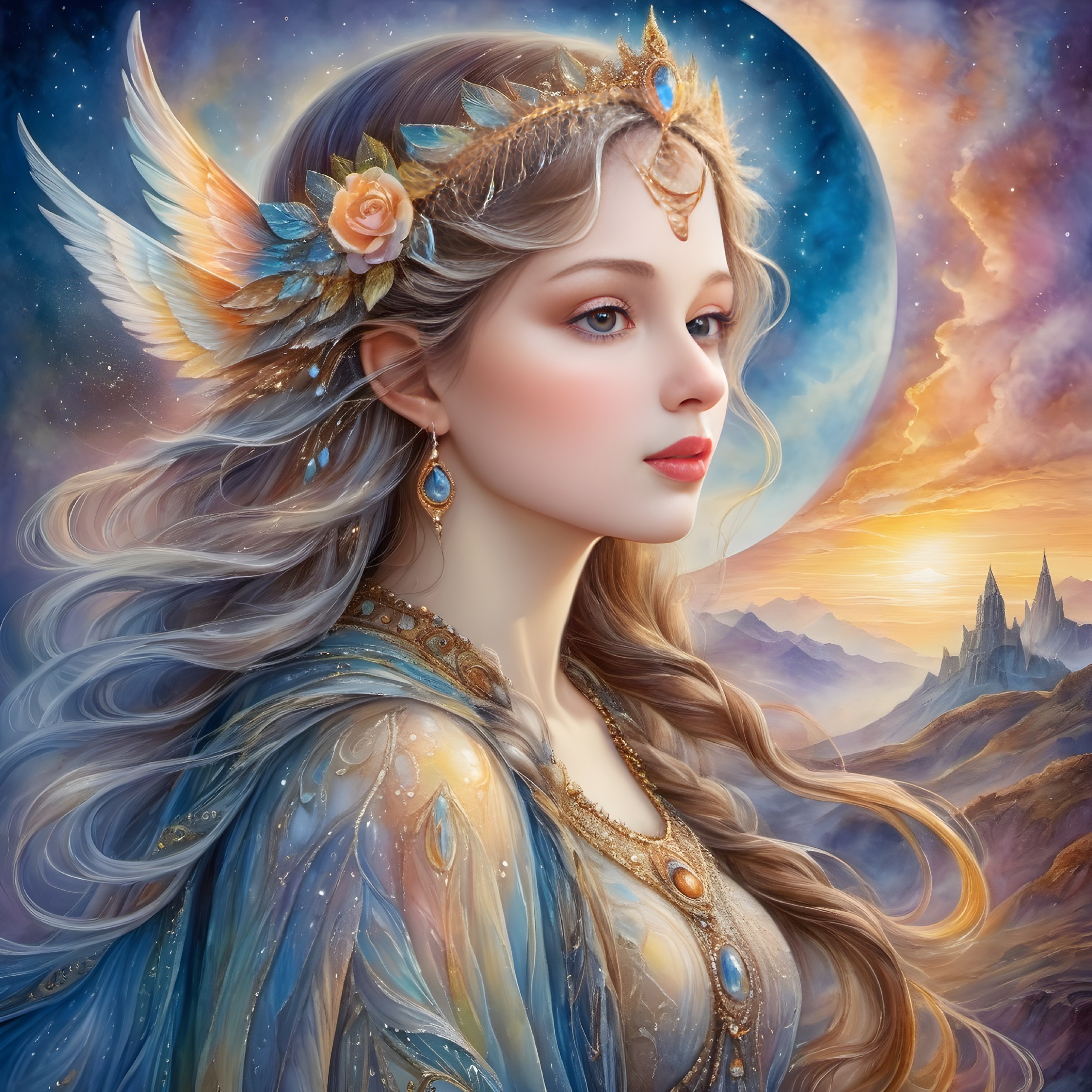 Cosmic Visionary: Digital Artwork of Elaborate Female Figure