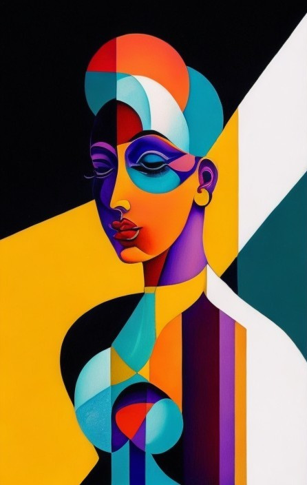 Colorful Cubist Femme Fatale in Abstract Realm