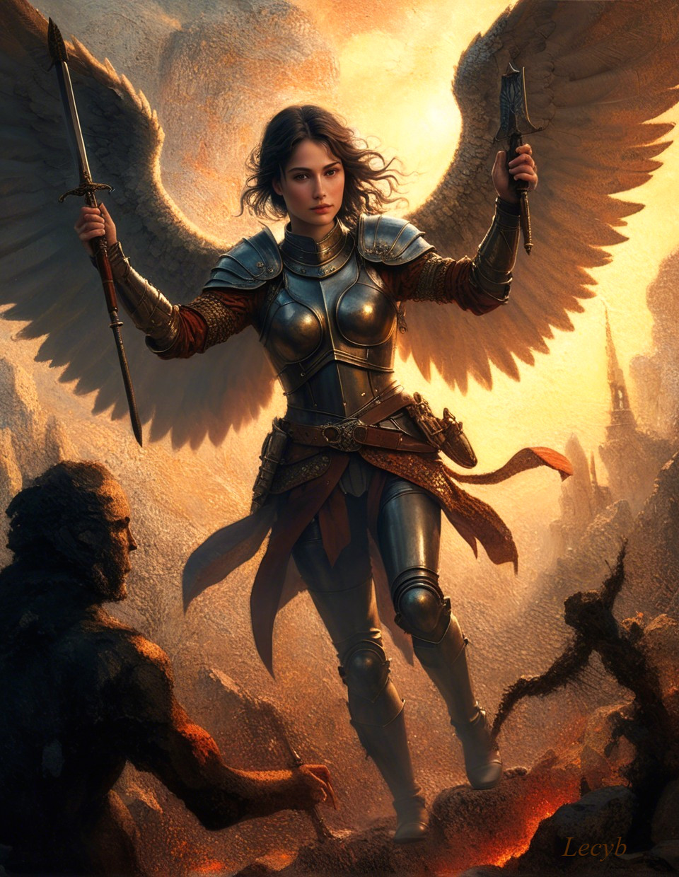 Fierce Warrior Amidst Dark Creatures