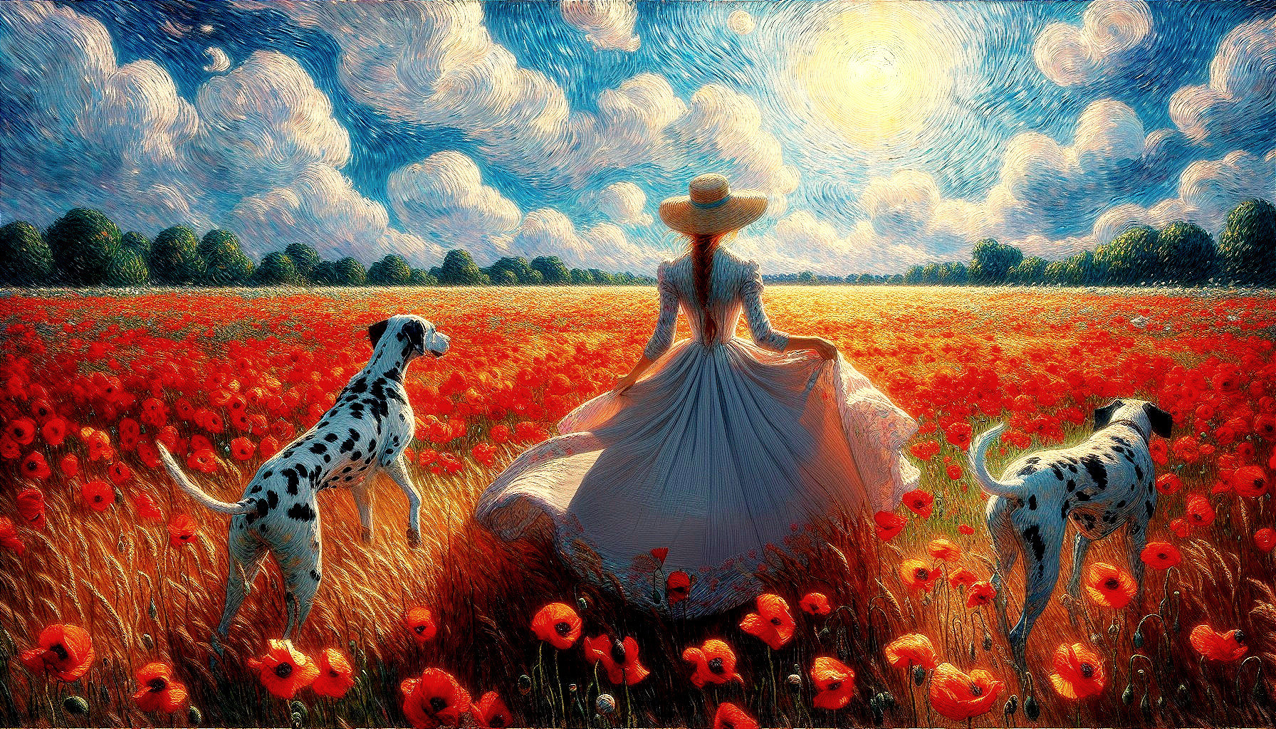 Joyful Dog in a Colorful Flower Field. "I'm a happy dog, happy happy Dog."