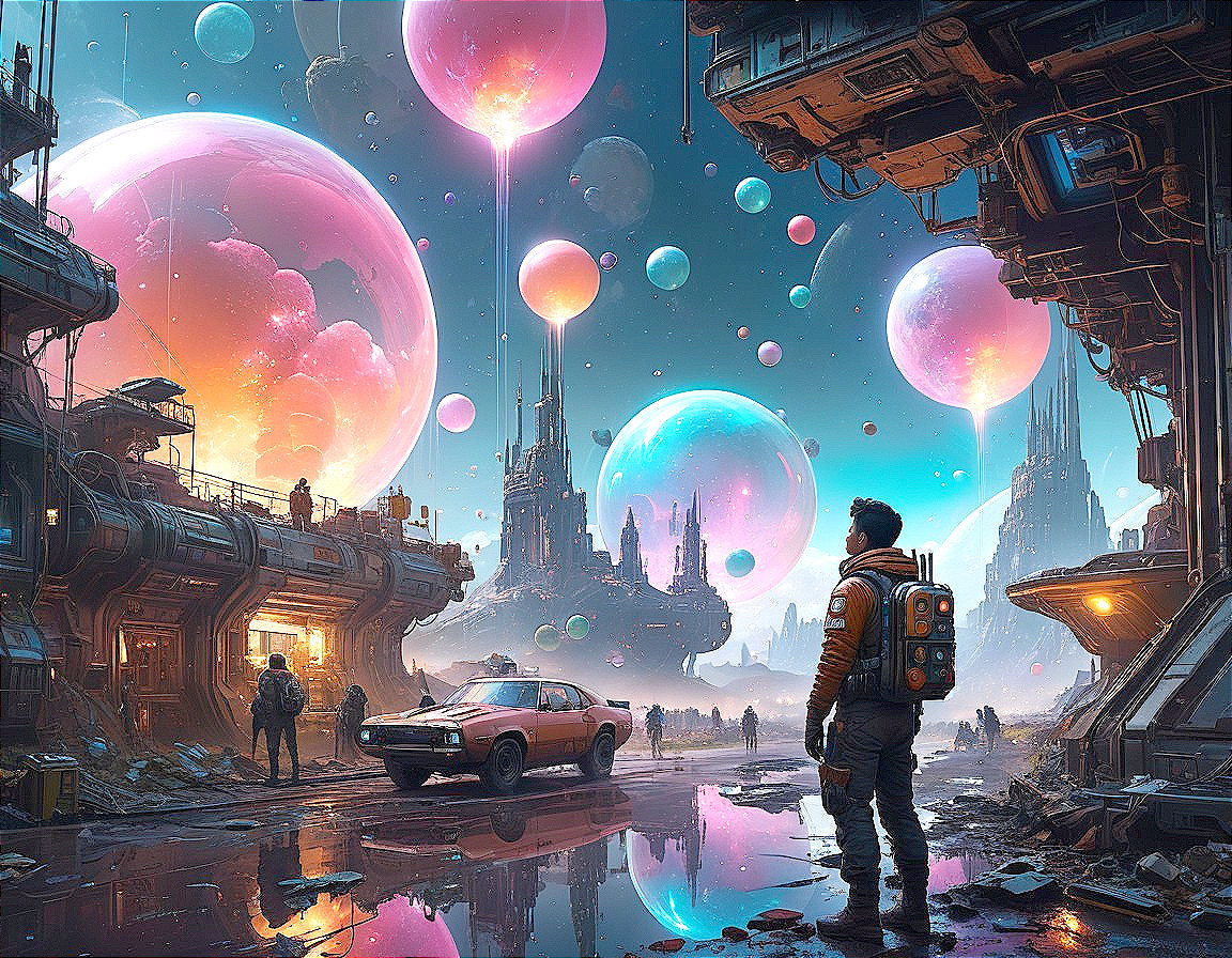 Cosmic Orbs in a Surreal Landscape