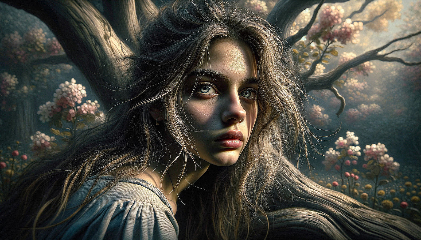 Enigmatic Beauty: Tree Perch Portrait