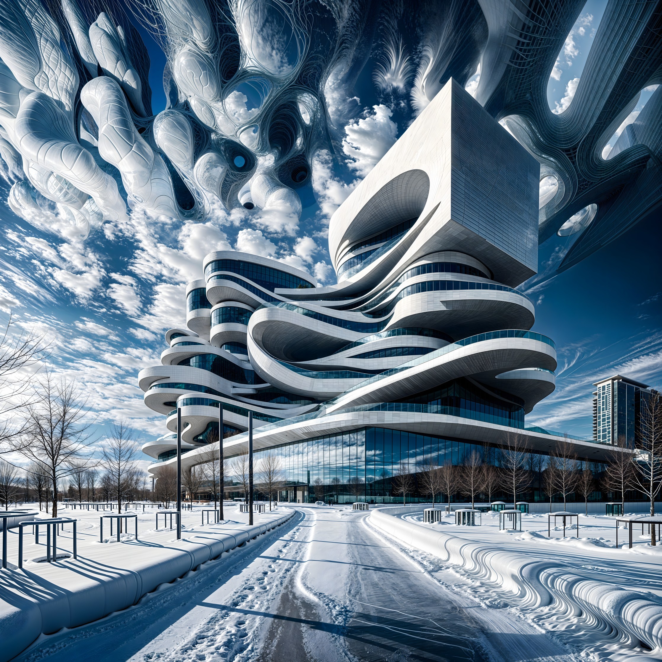 Sky High + Flying Buttresses SK 329.5. www.omarsolh.com. Curved Architecture in Snowy Landscape