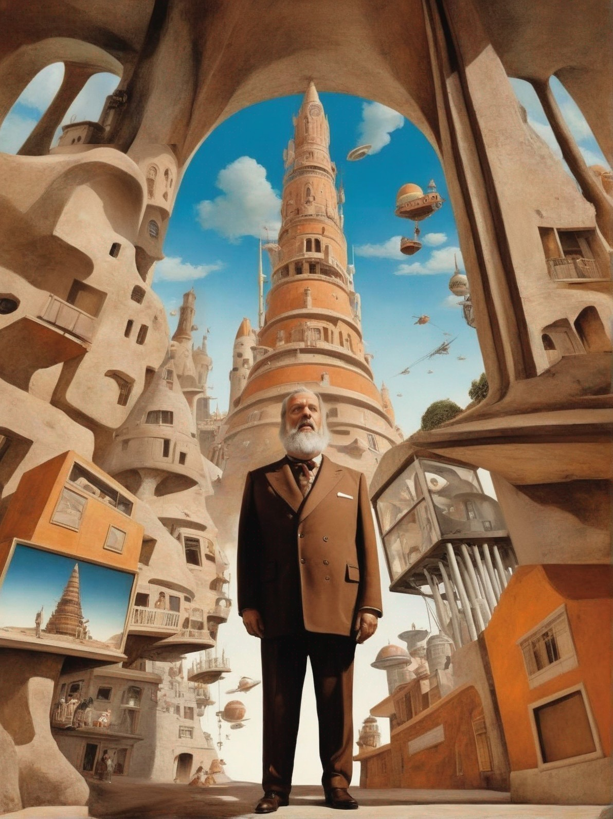 Psychopunk Whimsical Fantasy Cityscape Cosmic Encounter