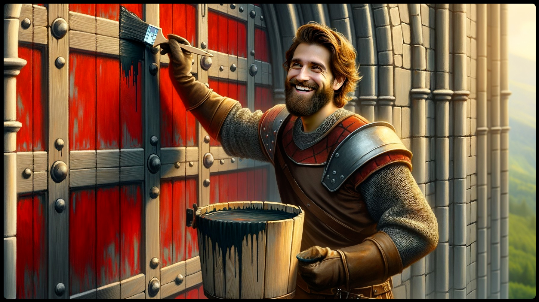 A brave knight watches over his fiefdom and his subjects!