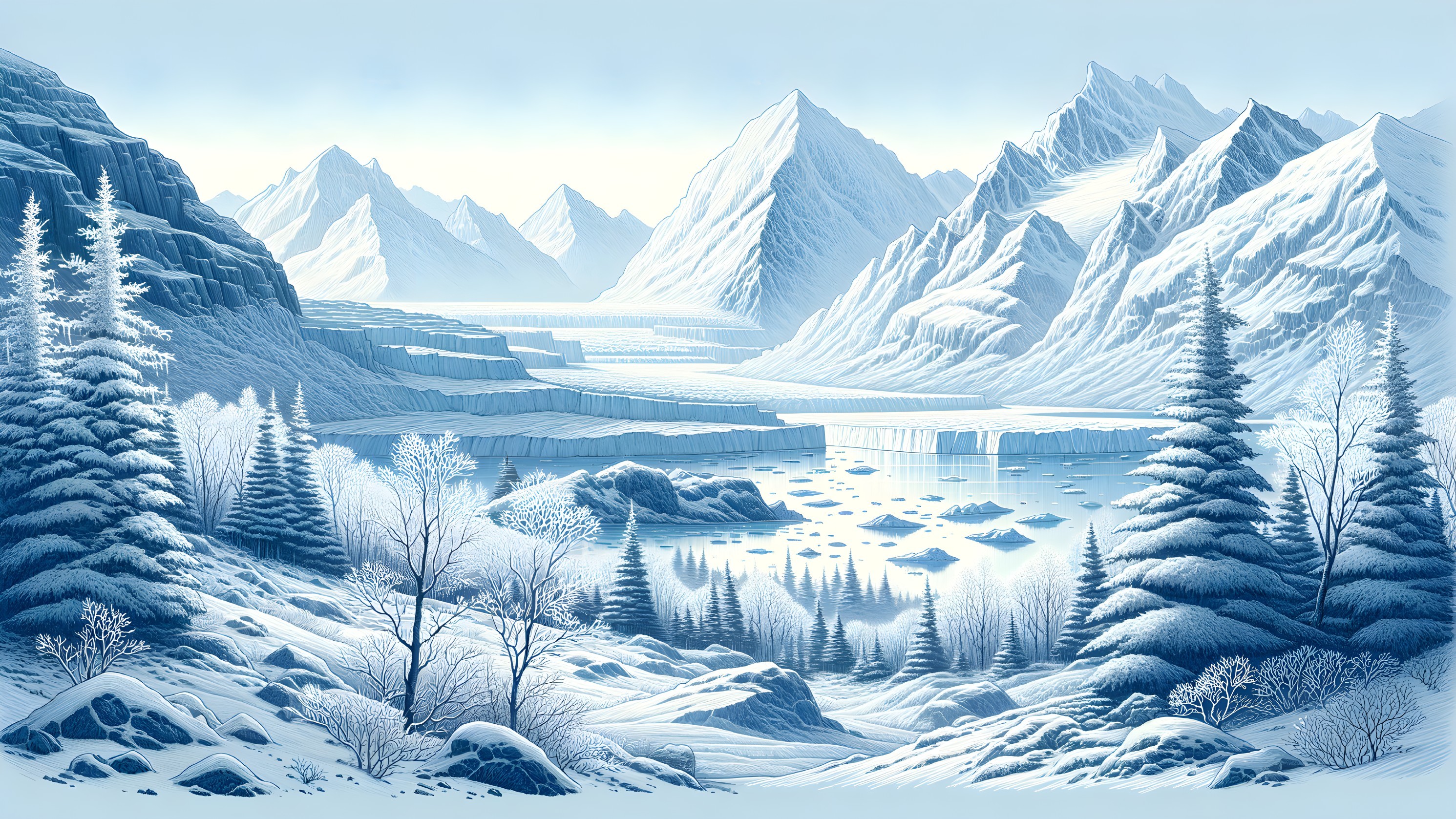 Serene Winter Landscape in Icy Blues