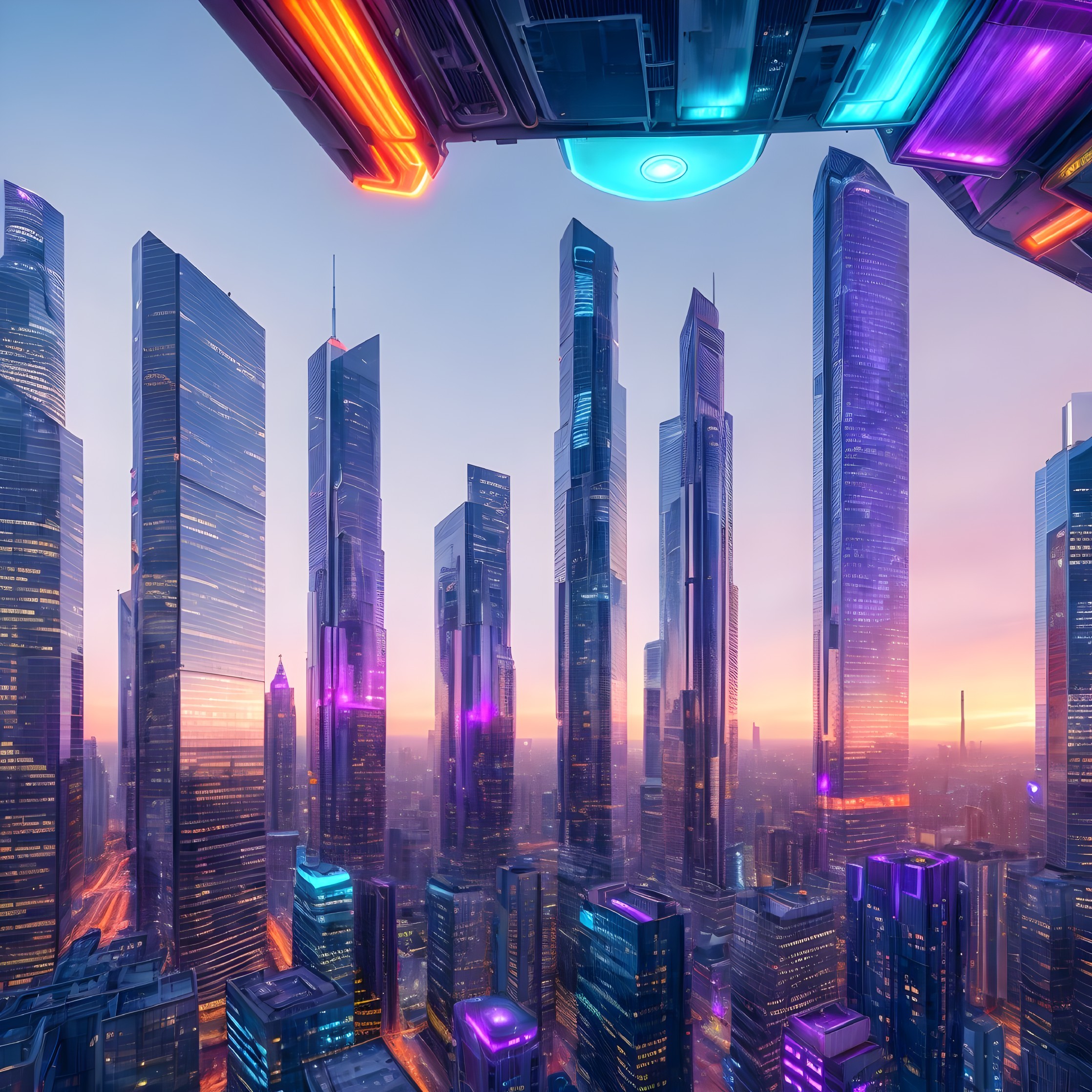 Dusk Over a Dazzling Futuristic Skyline