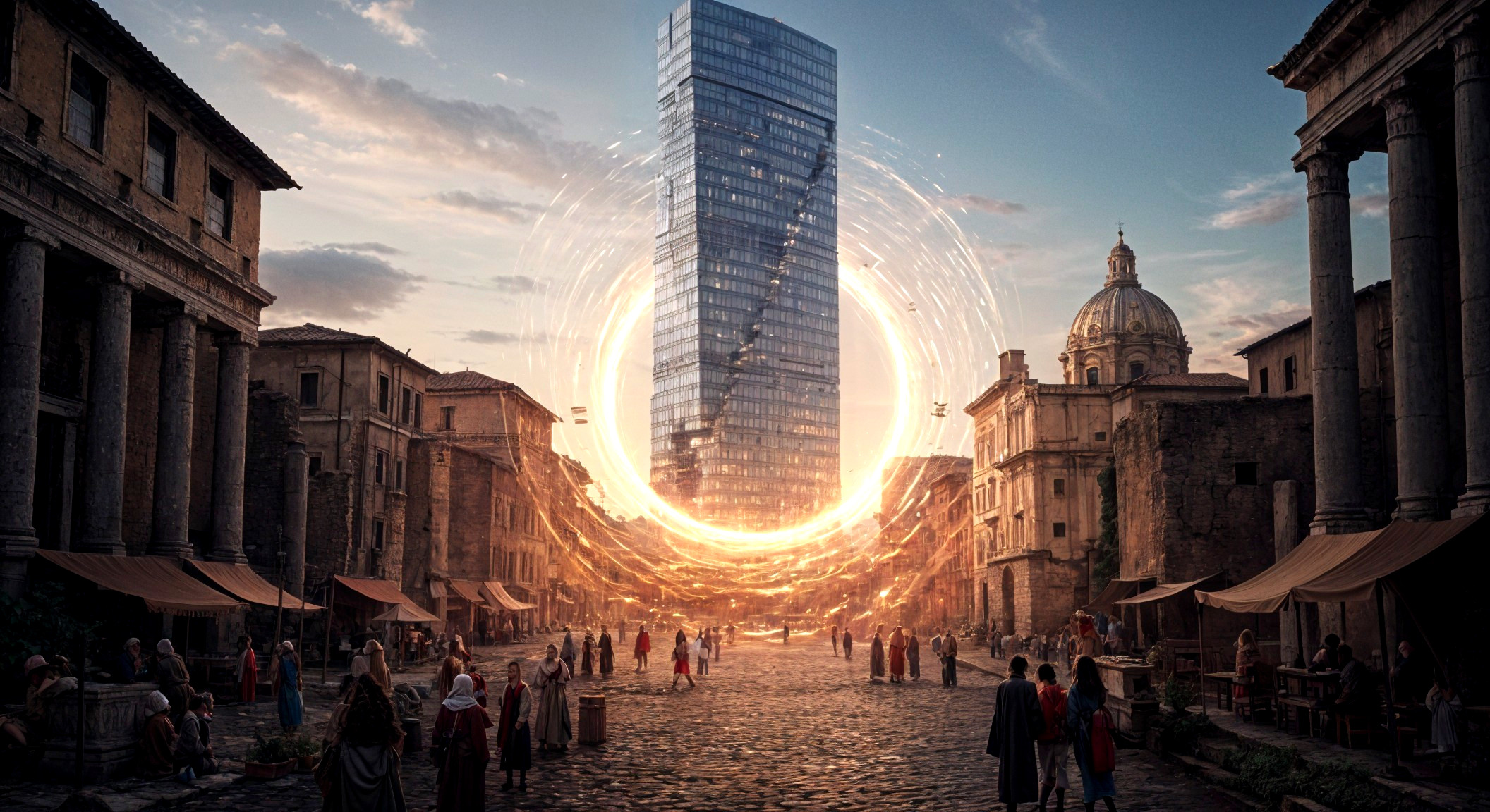Futuristic Skyline Meets Ancient Marketplace