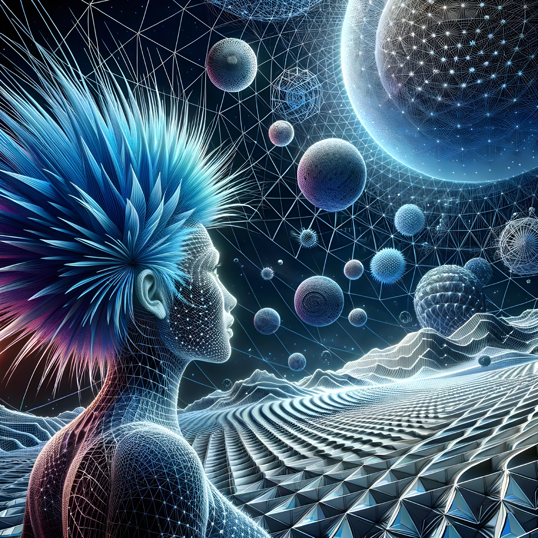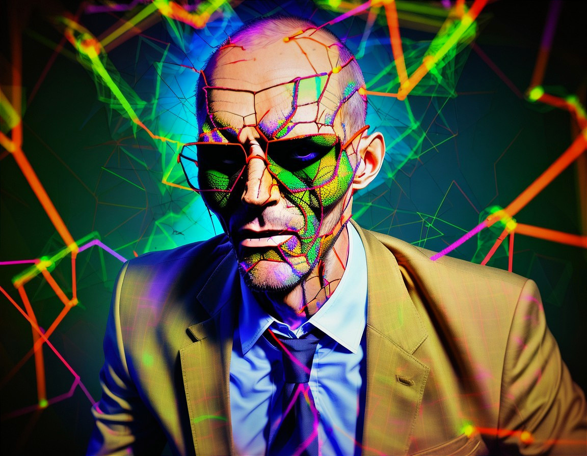 Geometric Fusion: Vibrant Male Portrait