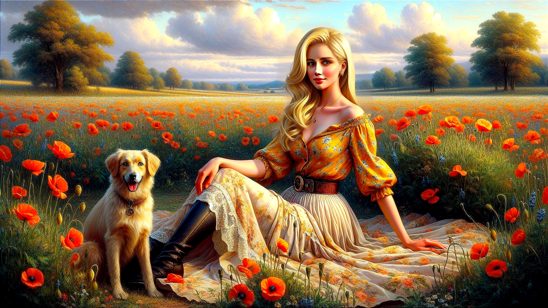 Poppy Field Serenity with a Loyal Friend