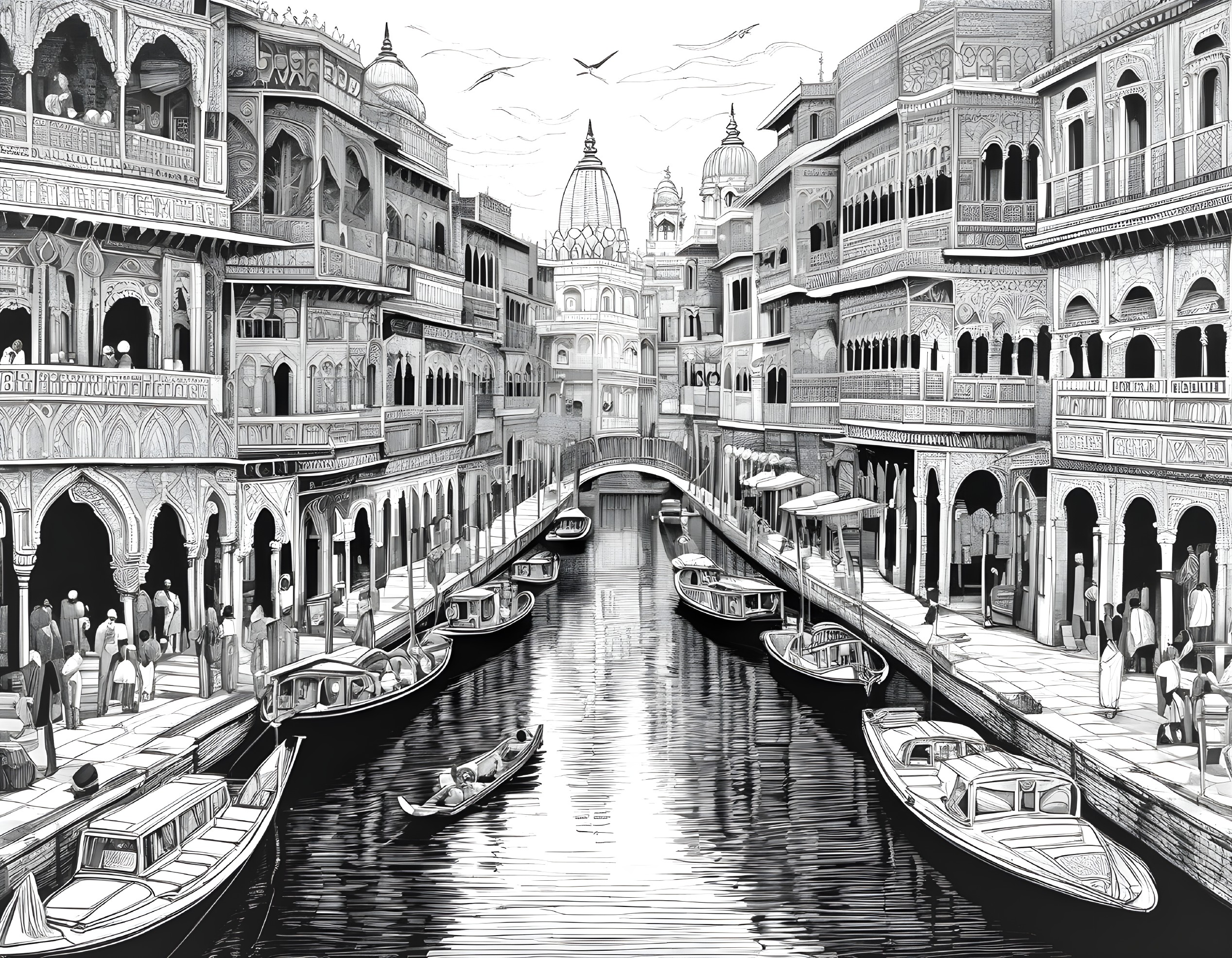 Venetian Dreamscape: Monochrome Cityscape