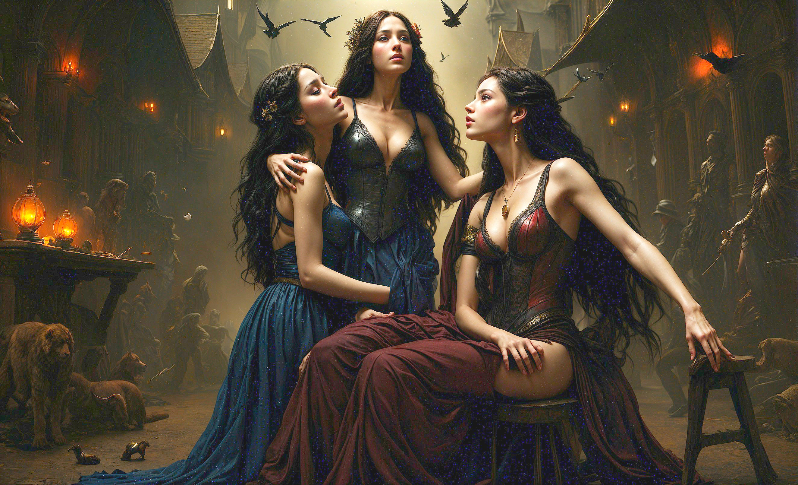 Elegant Women in Gothic Atmosphere