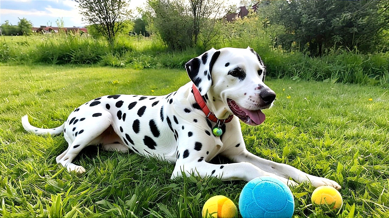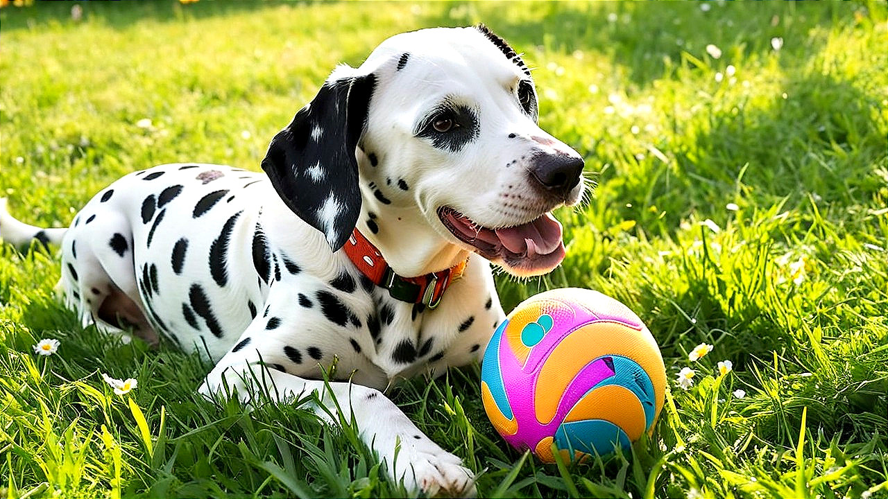 Joyful Dalmatian Plays in Sunny Meadow