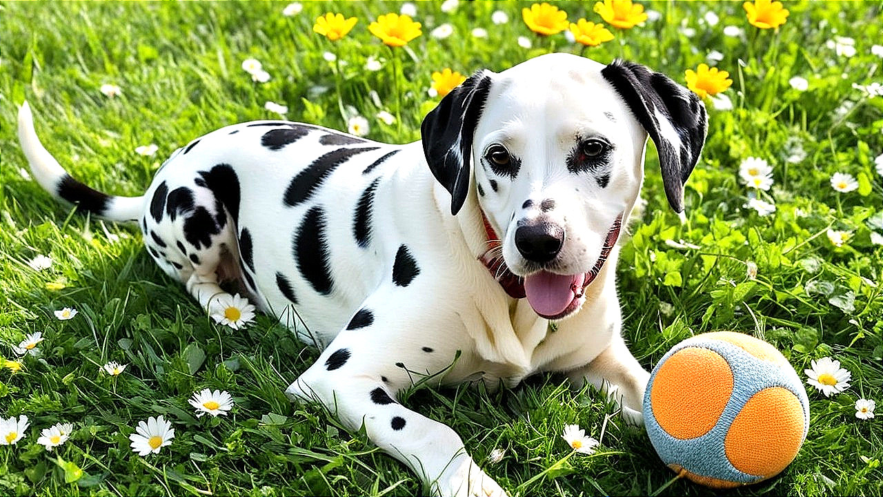 Joyful Dalmatian Plays in Sunlit Meadow