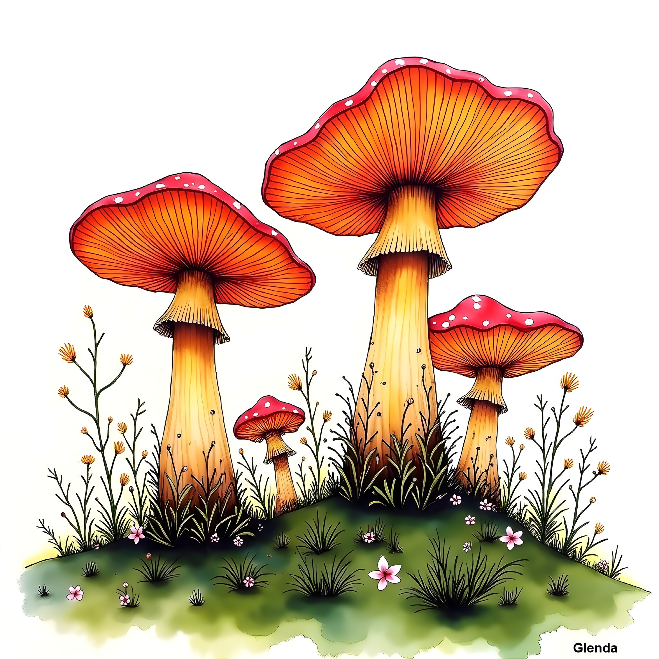 Whimsical Orange Mushrooms