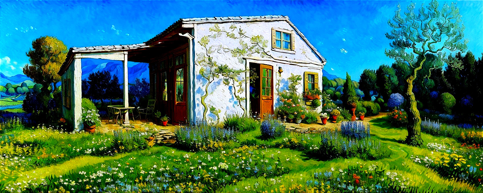 Scenic Misty Valley Landscape With Trees and Forked Pathway at Sunrise