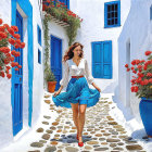 Seaside Serenity: Ancient Greek Village in Watercolor