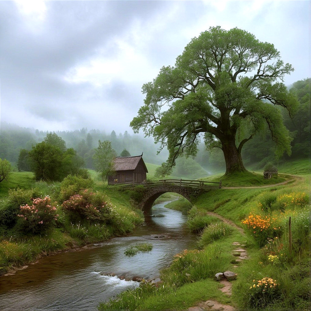 Serene River and Charming Countryside Bliss