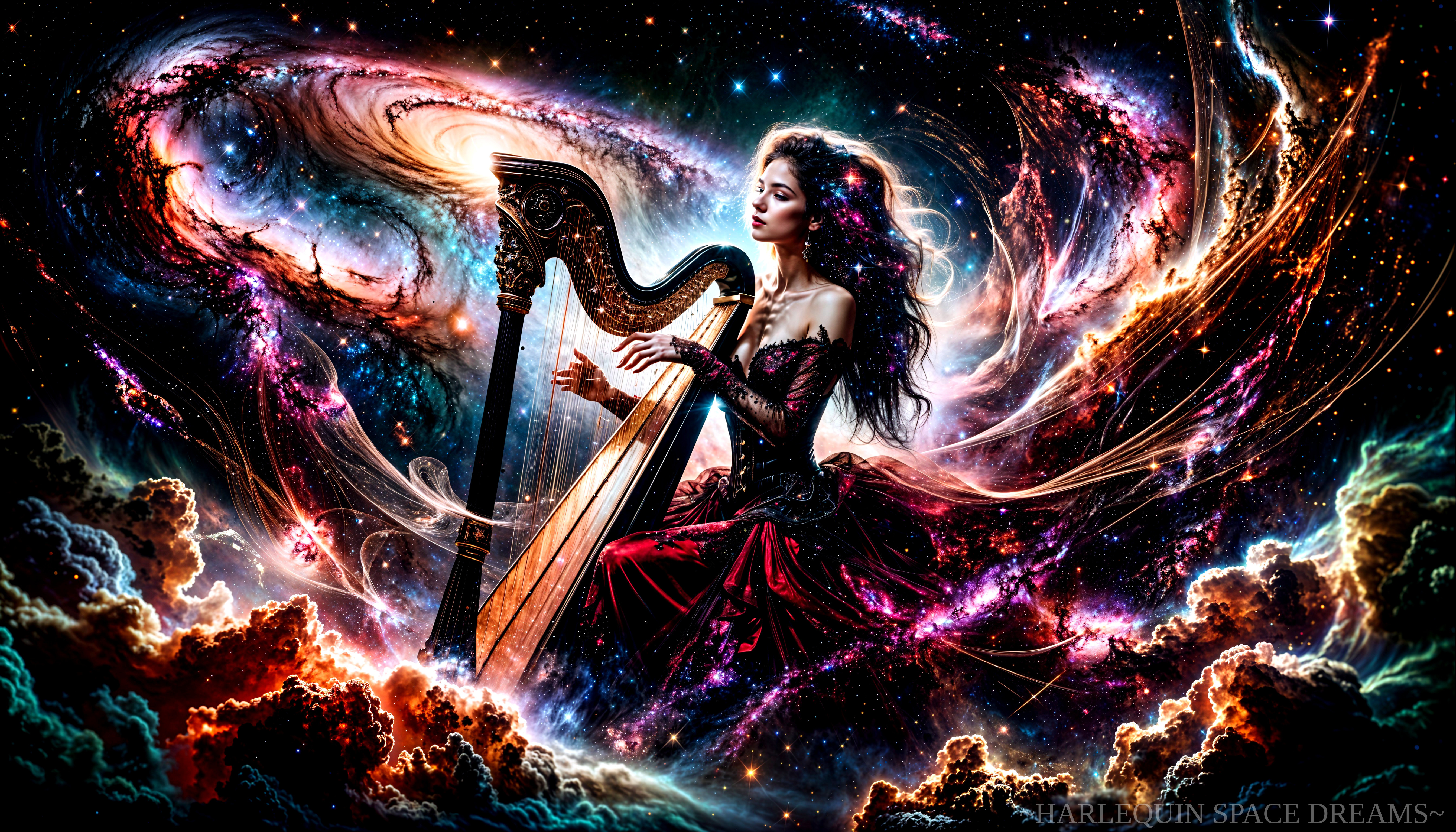 Cosmic Harpist in a Celestial Dreamscape