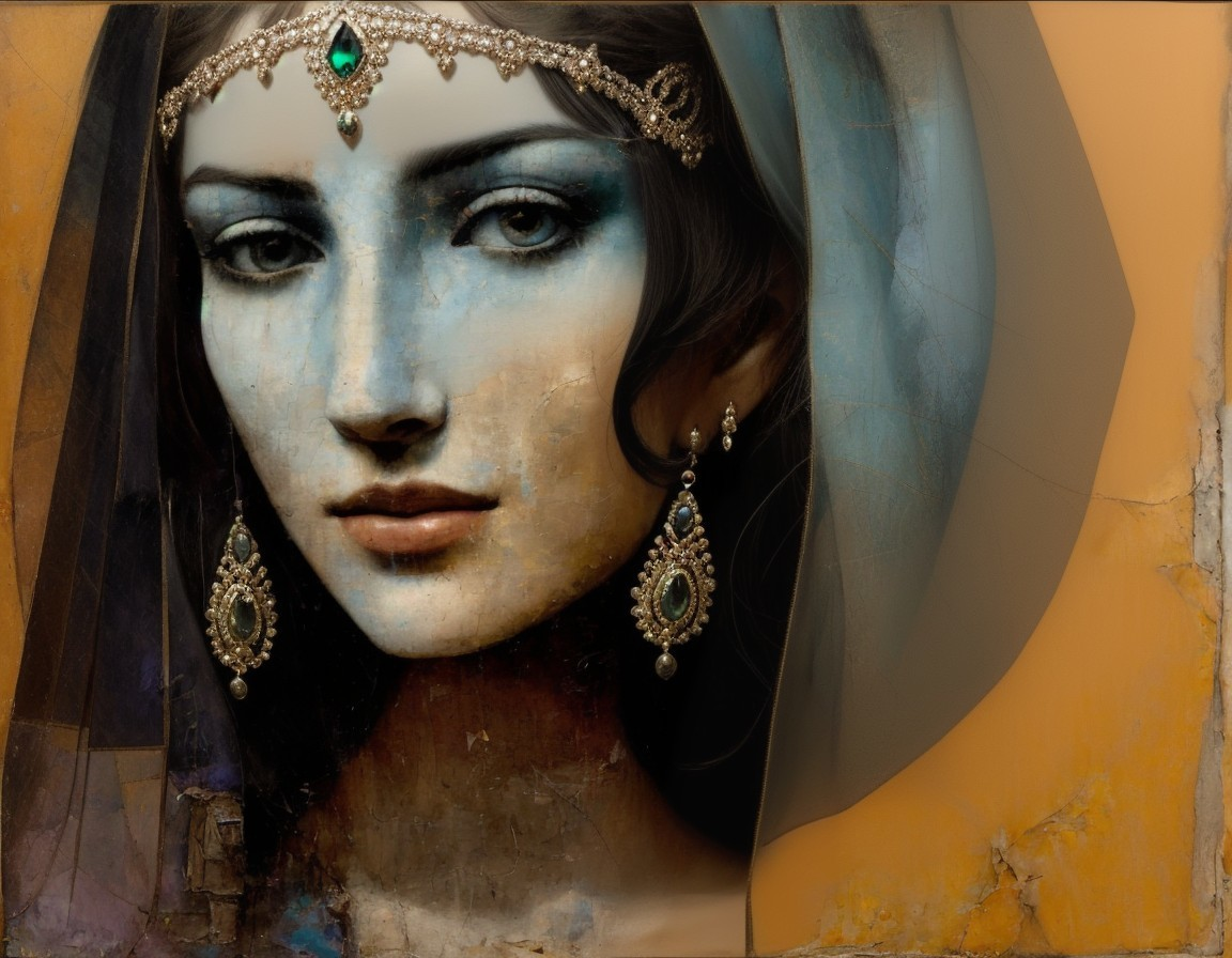 Bejeweled Beauty: Ornate Portrait in Mixed Media