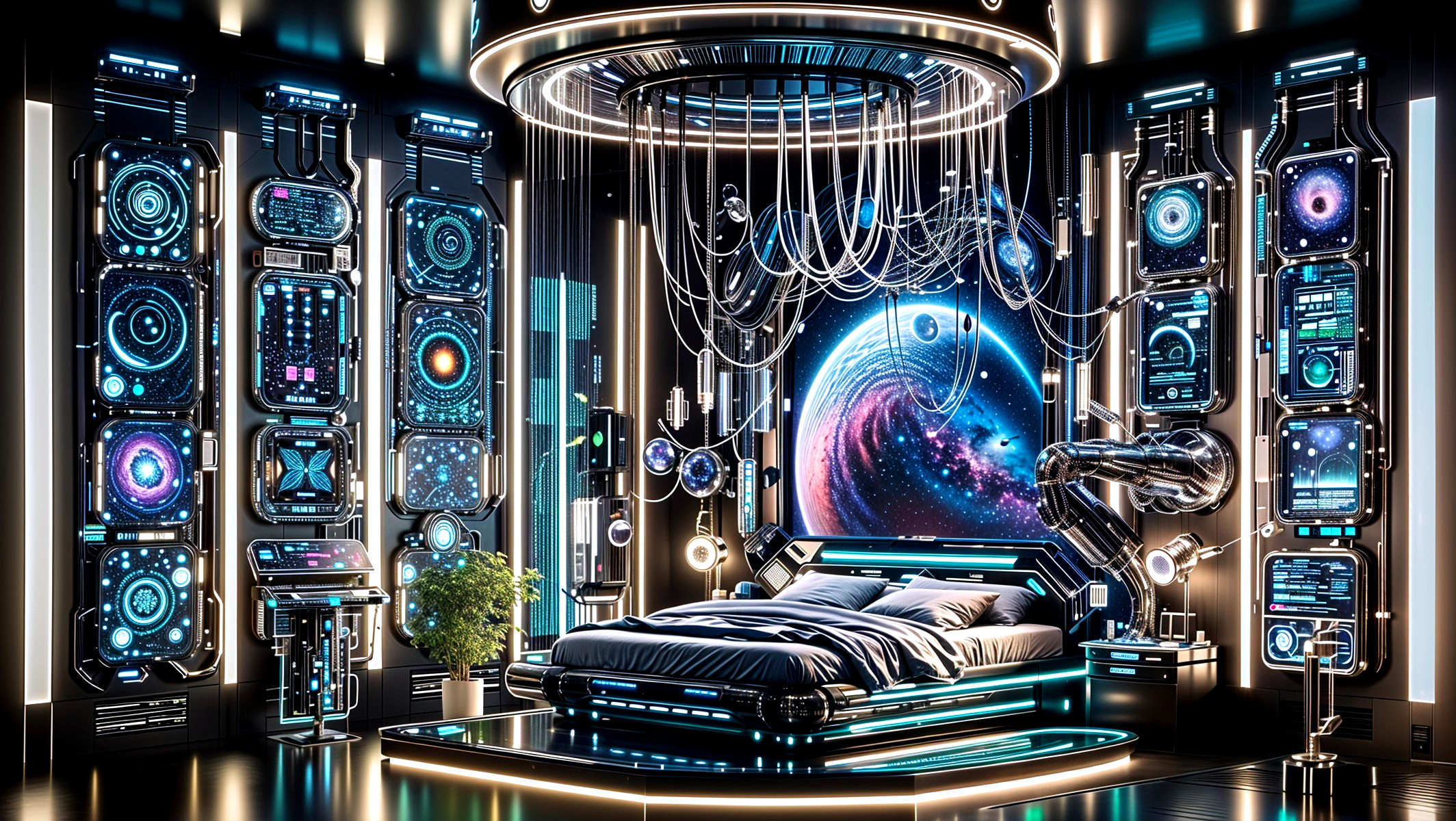 Futuristic Bedroom with Cosmic Ambiance