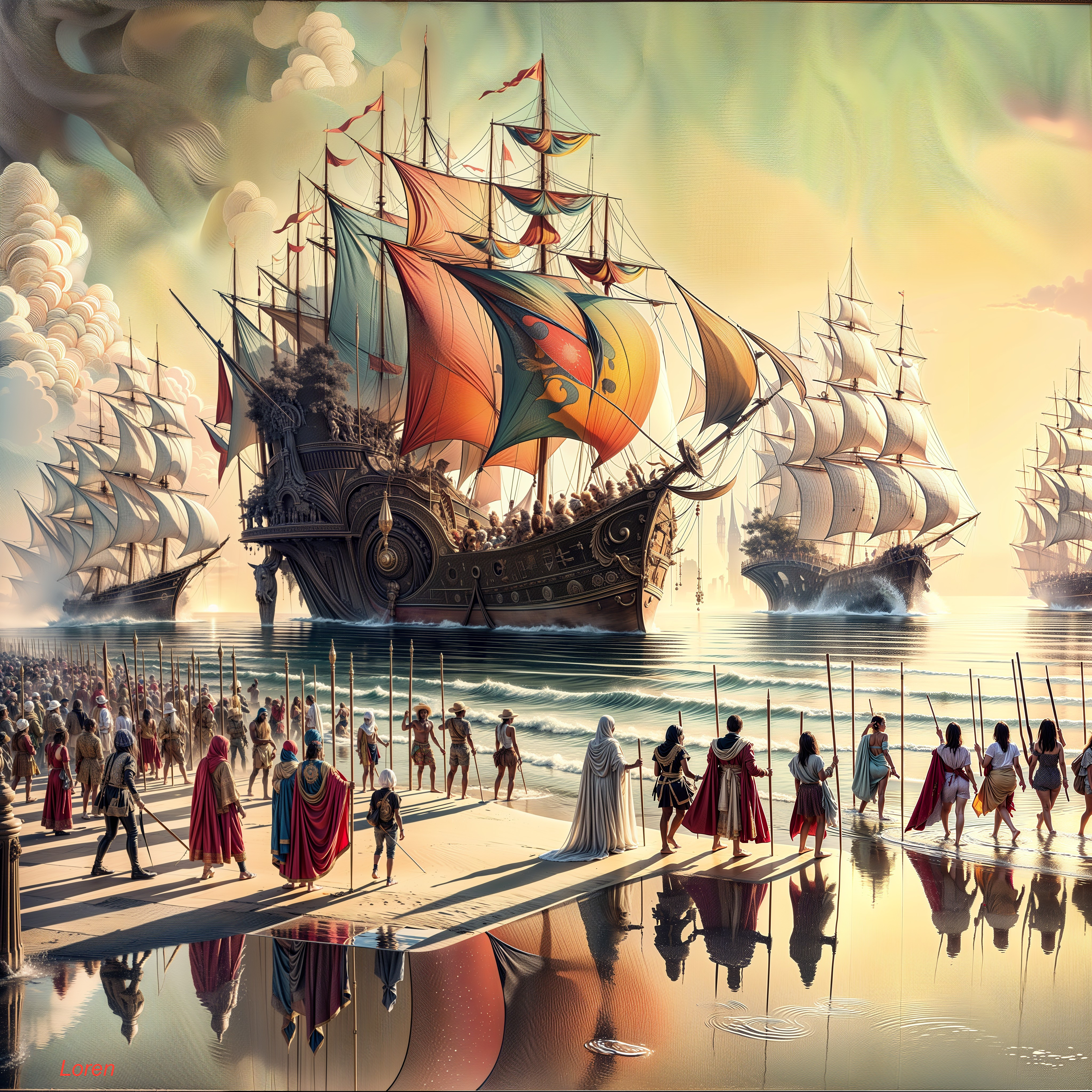 Coastal Adventure with Ornate Ships