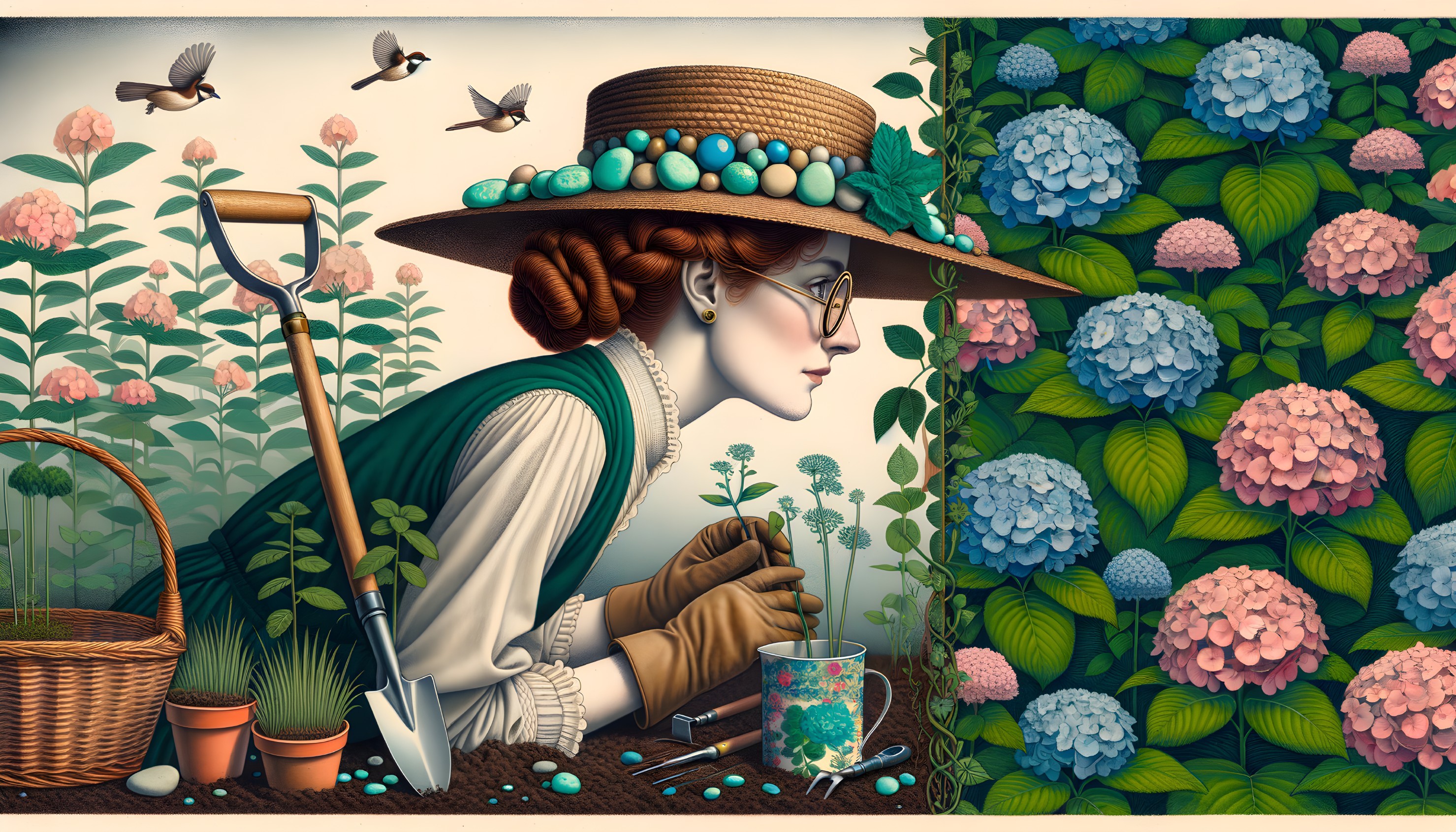 Tranquil Sunset Oasis: Hydrangeas by the Shore