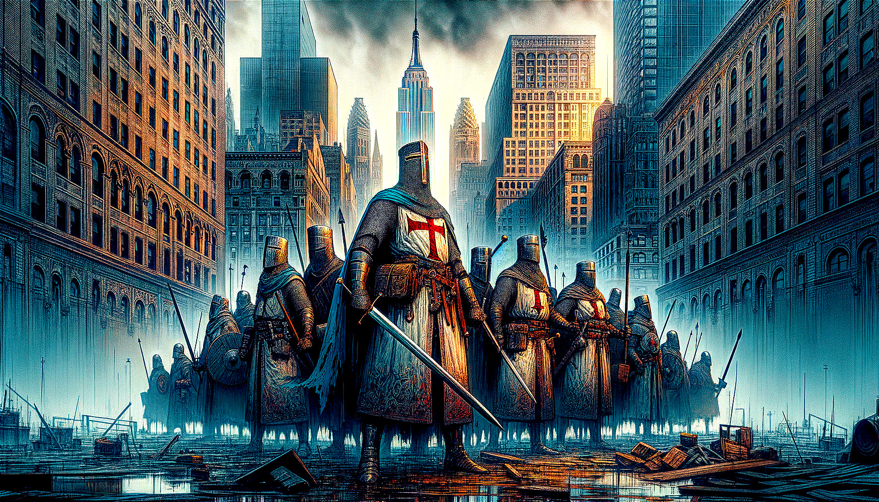 Medieval Crusaders Conquer NYC: Ultra-Detailed Masterpiece