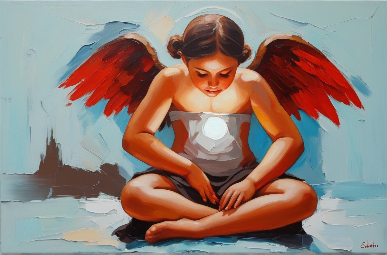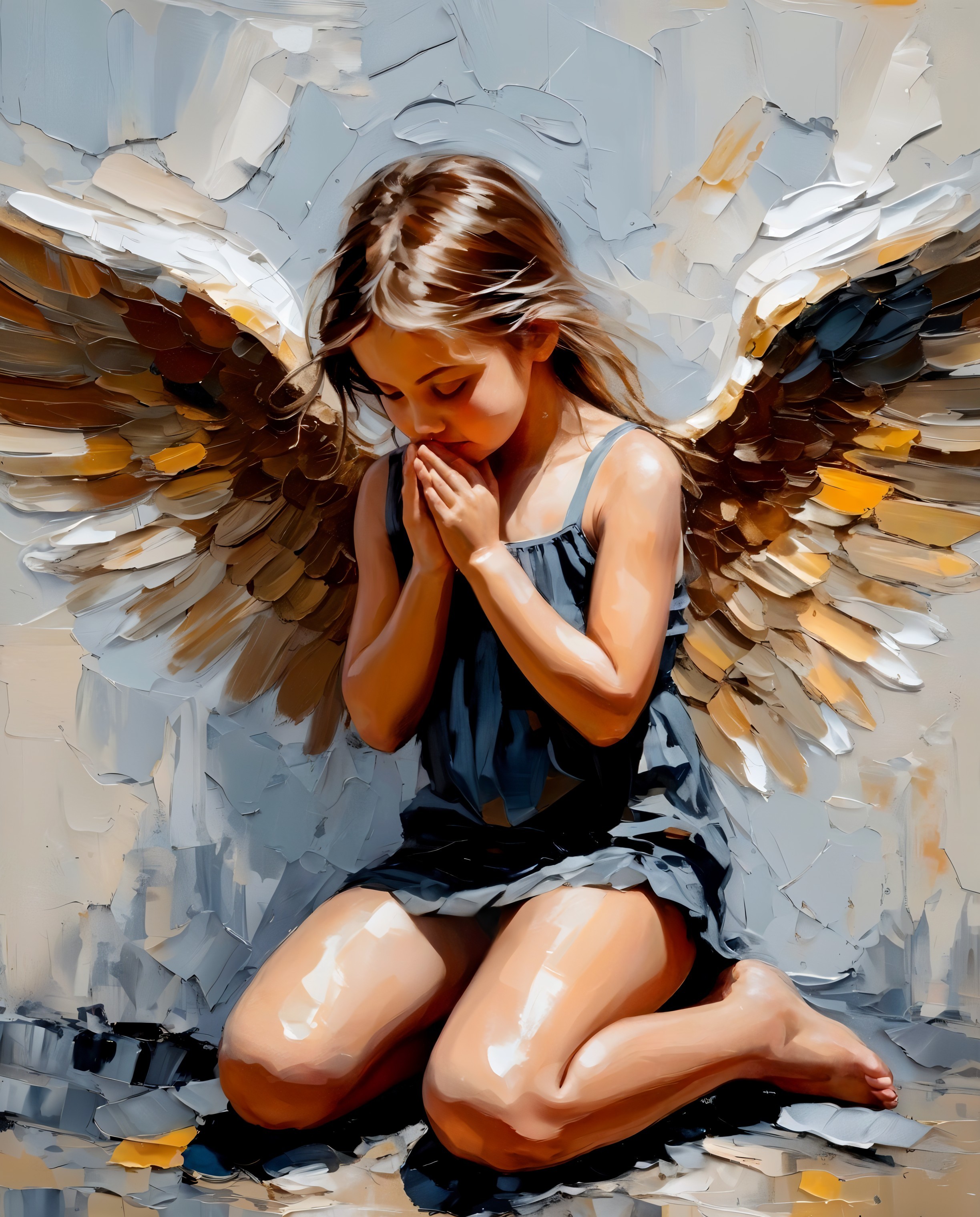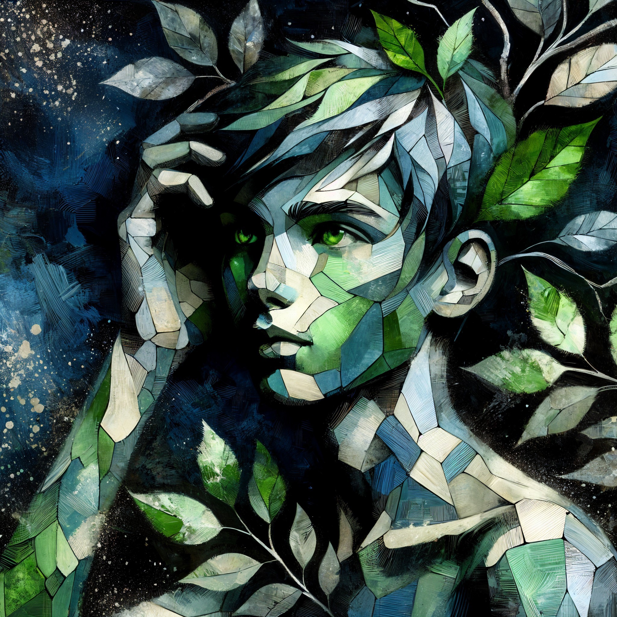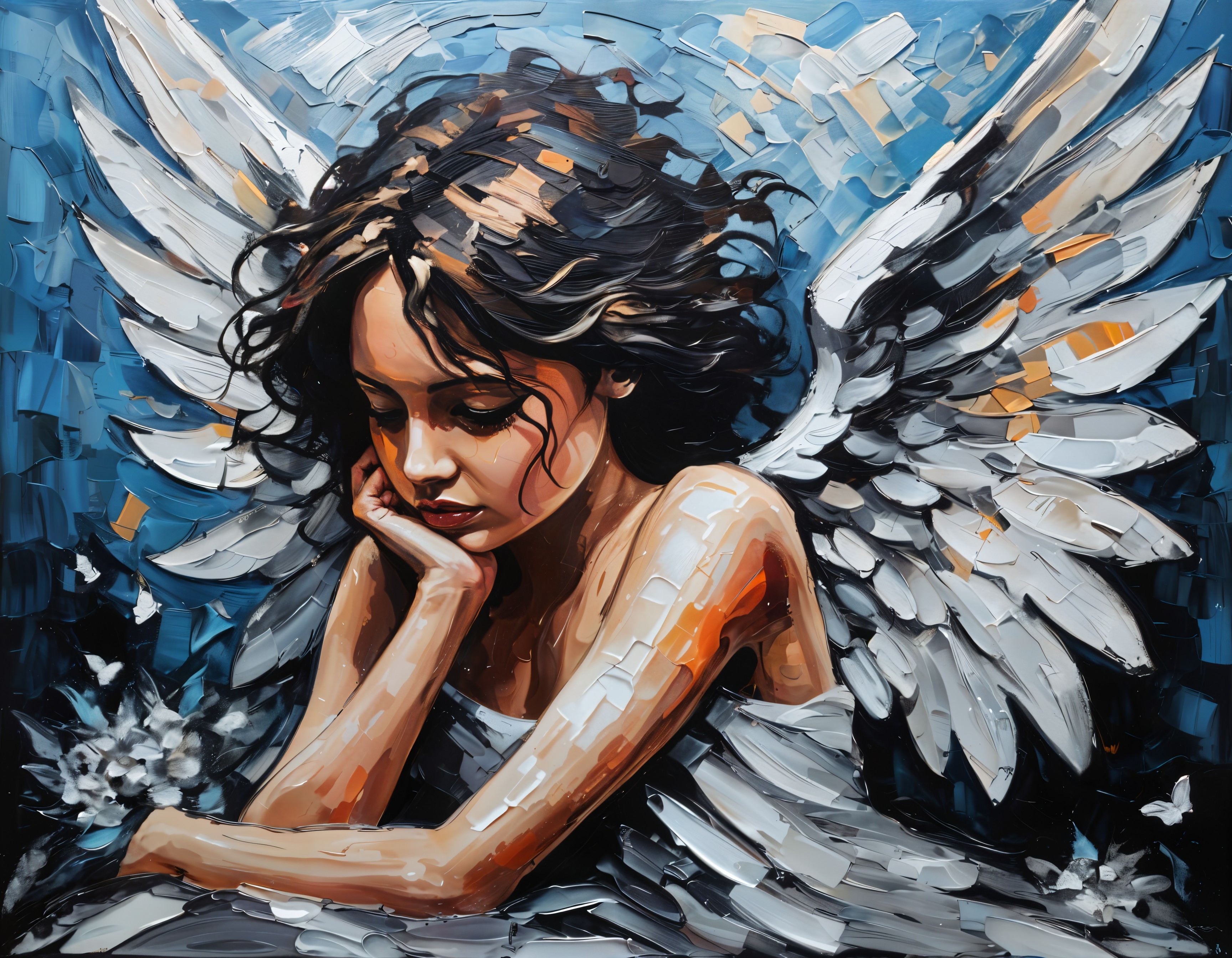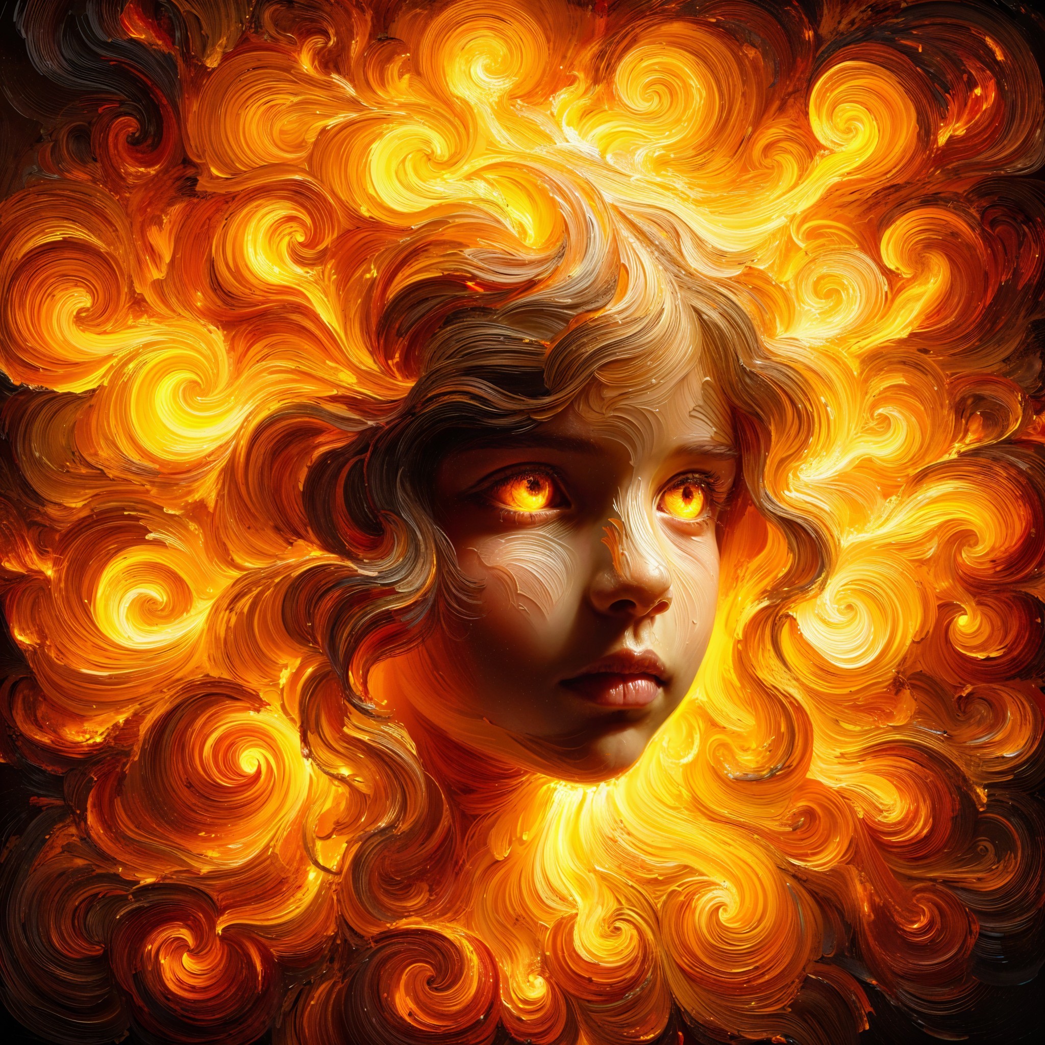 Golden Impasto Reflections: Abstract Portrait Sketch