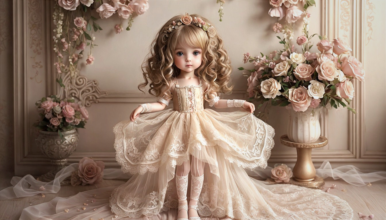 Floral Elegance: Beige Doll in Pastel Garden