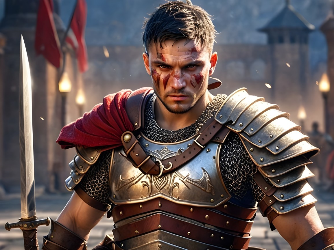 Fierce Roman Warrior in Epic Battle Stance
