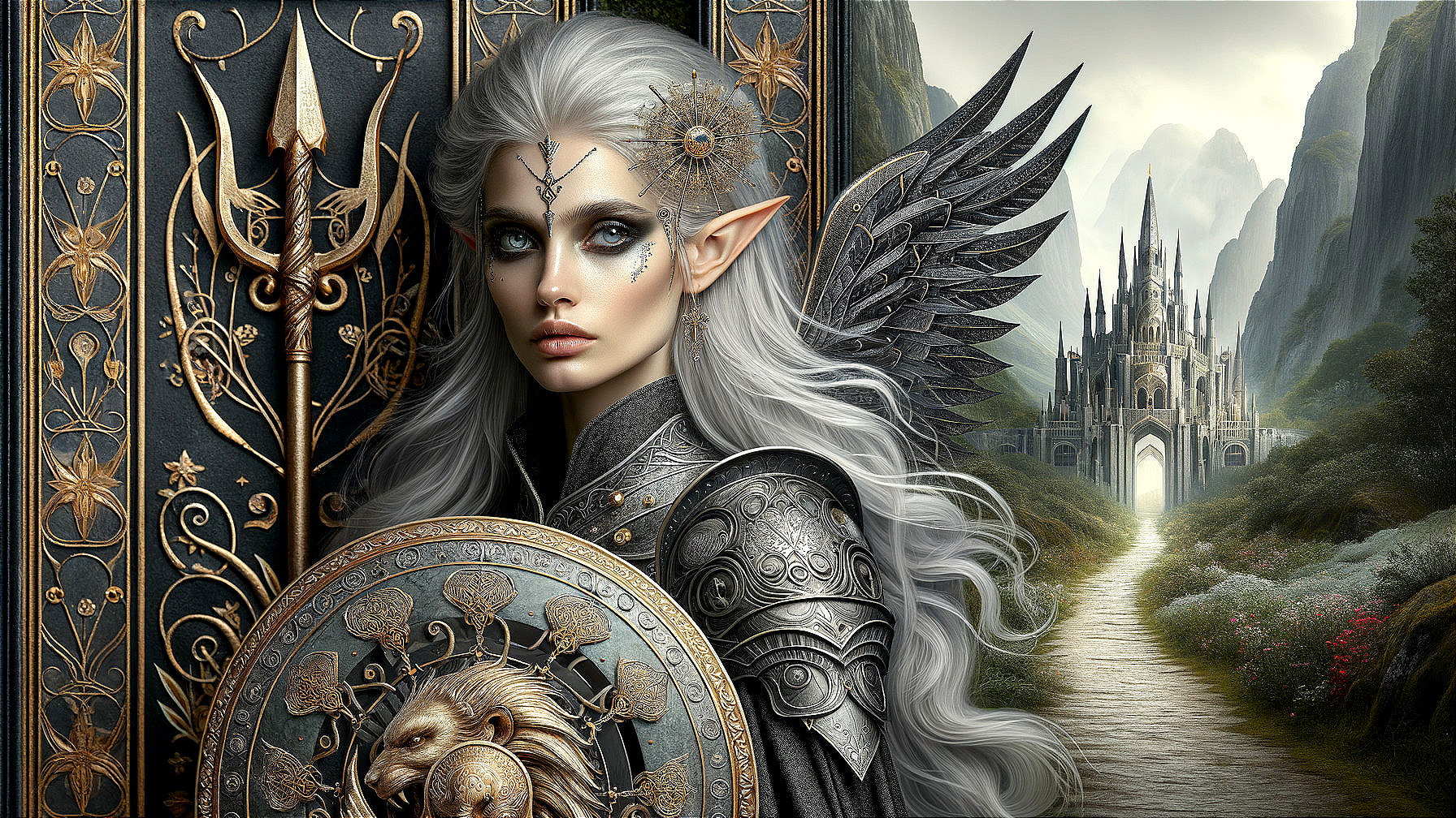 Dark Elven Warrior Amidst Majestic Mountains