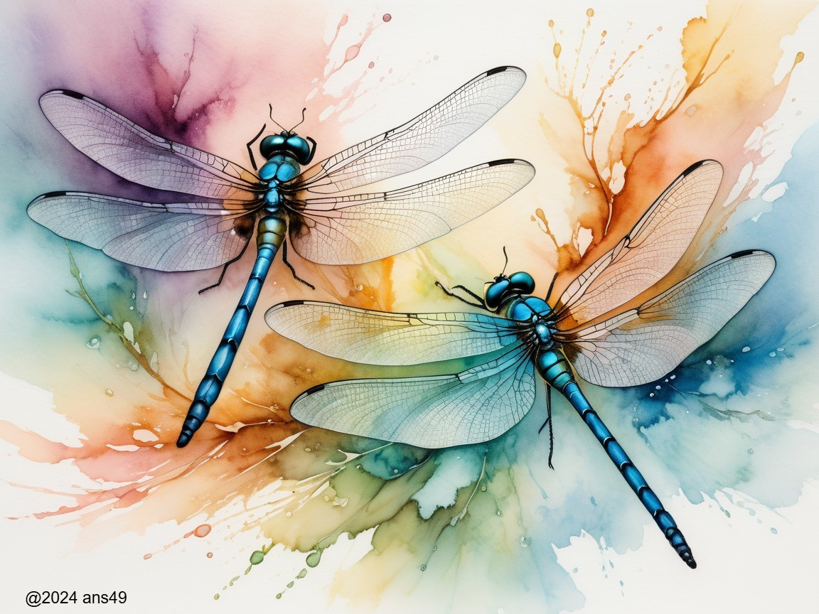 Whimsical Dragonflies in Colorful Watercolors