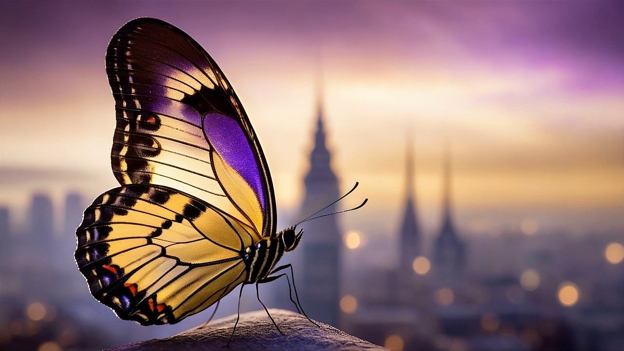 Butterfly Serenity Amidst Urban Sunset