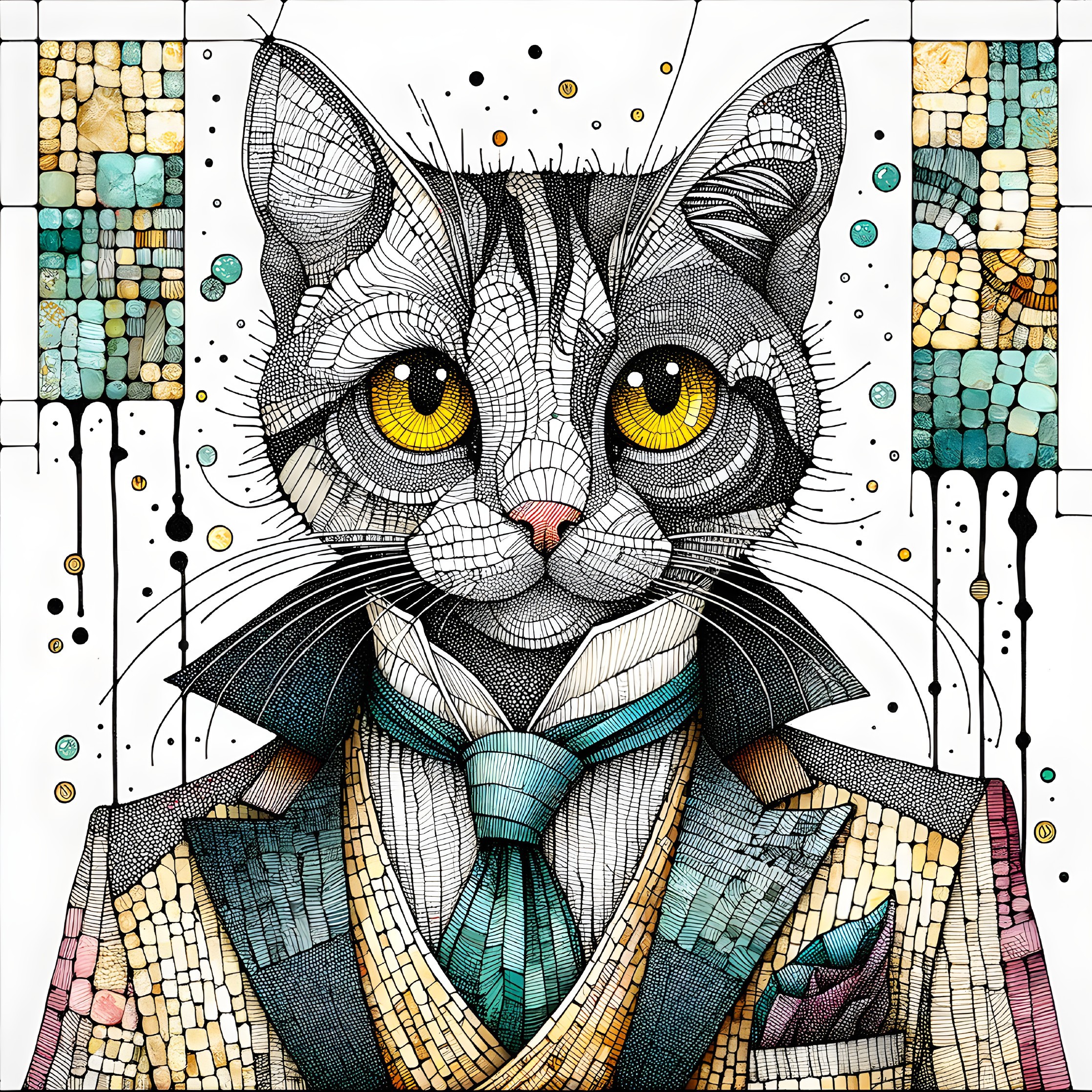Feline Illusion: Line of Cats on Spiraling Background