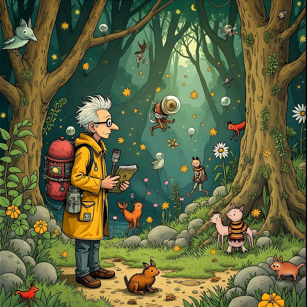 Curious Explorer in a Whimsical Forest