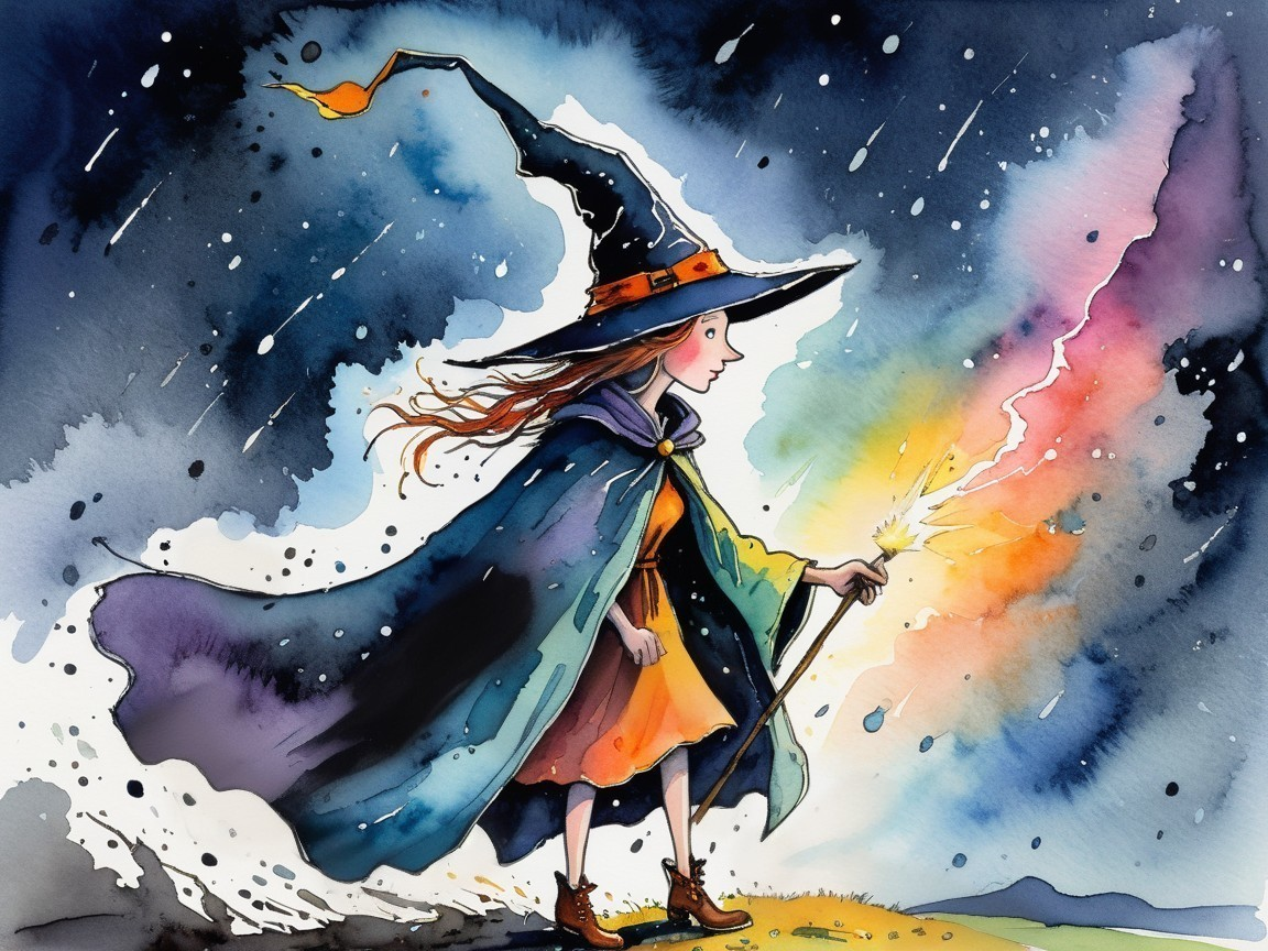 Whimsical Witch Casting Storm at Night