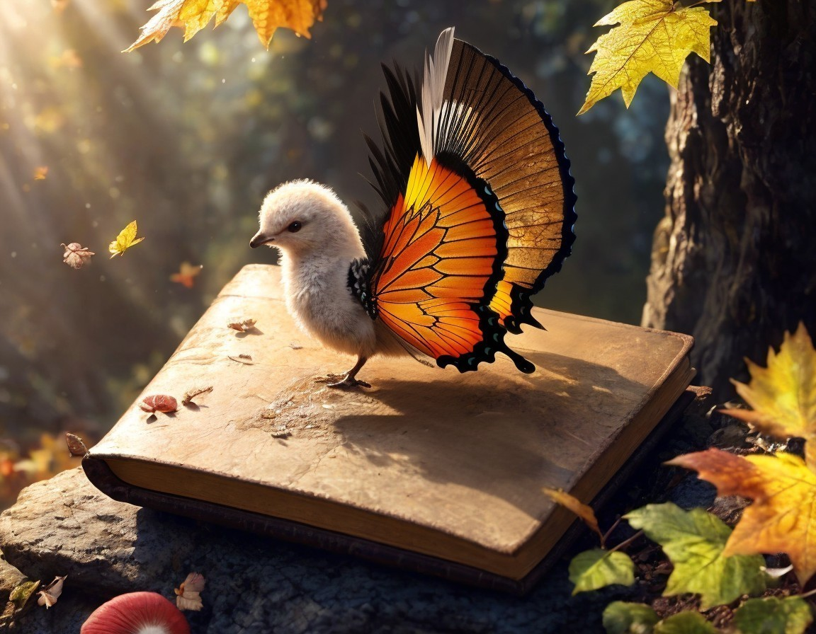 Bird with Feathered Butterfly Wings in Autumn