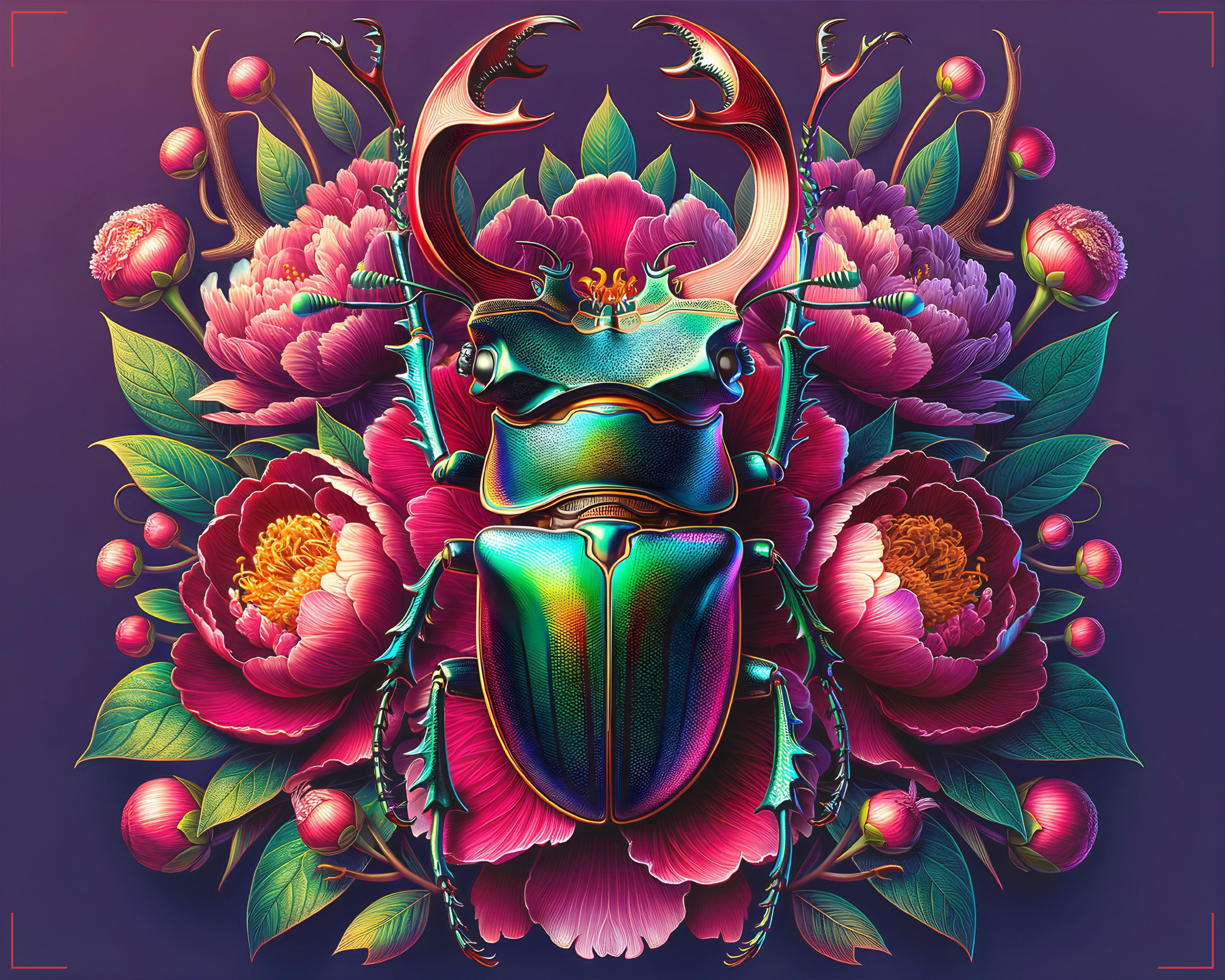 Exquisite Stag Beetle: Vibrant Floral Masterpiece