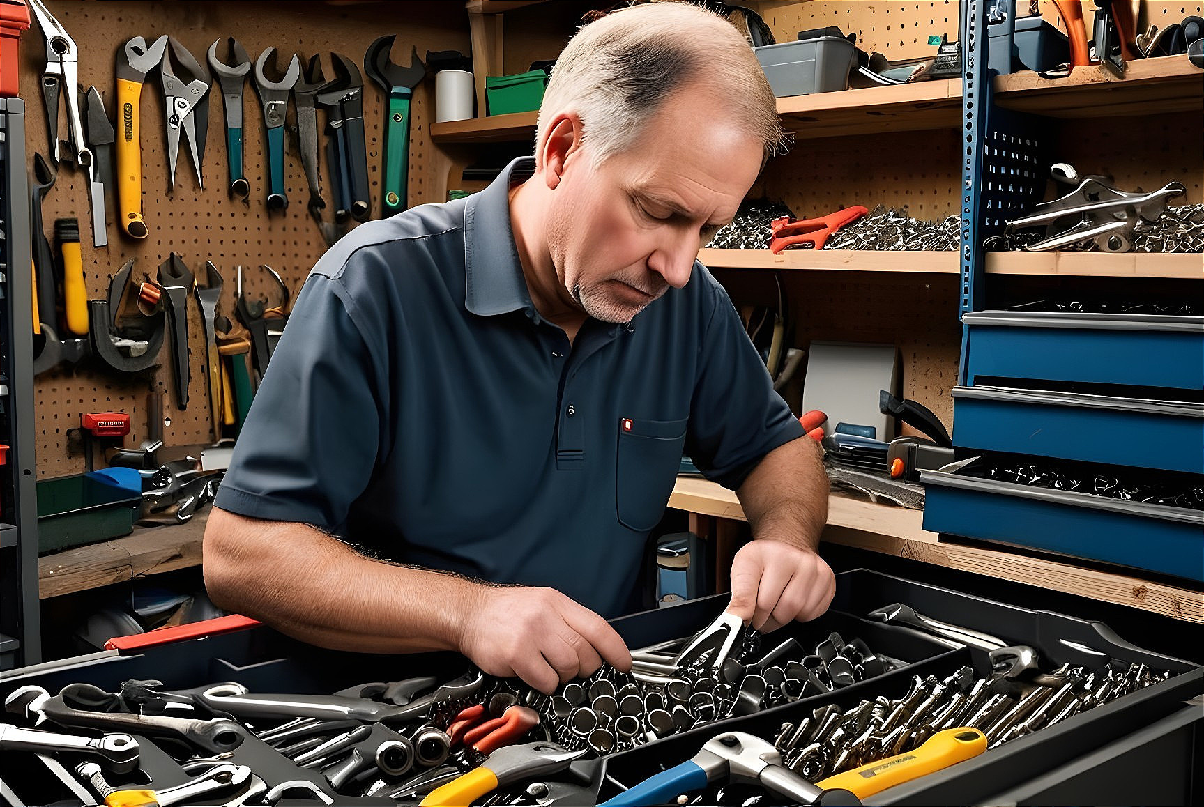 "Right. I know there's a 3/8ths Whitworh spanner in here somewhere".