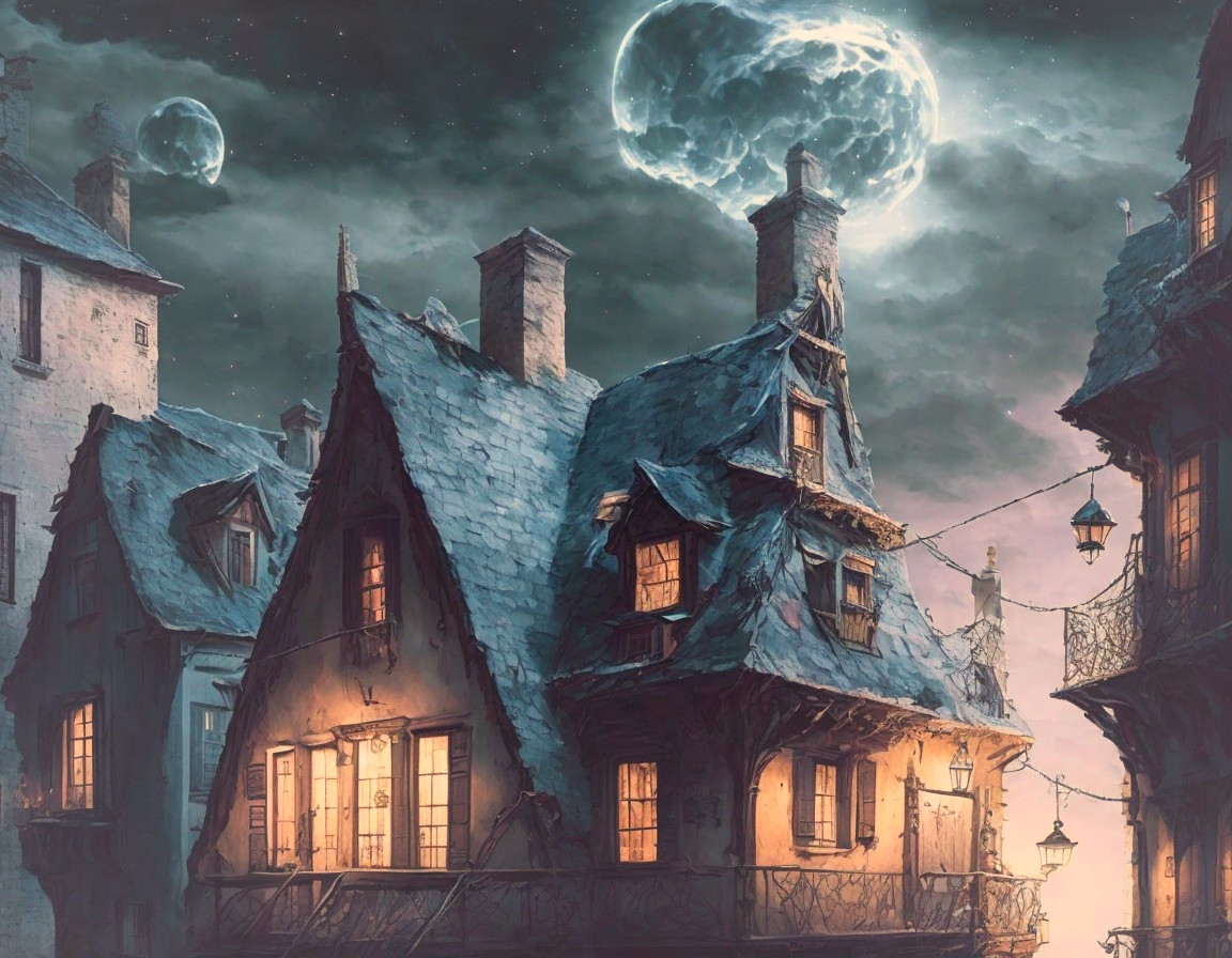Enchanting Village Under Two Moons